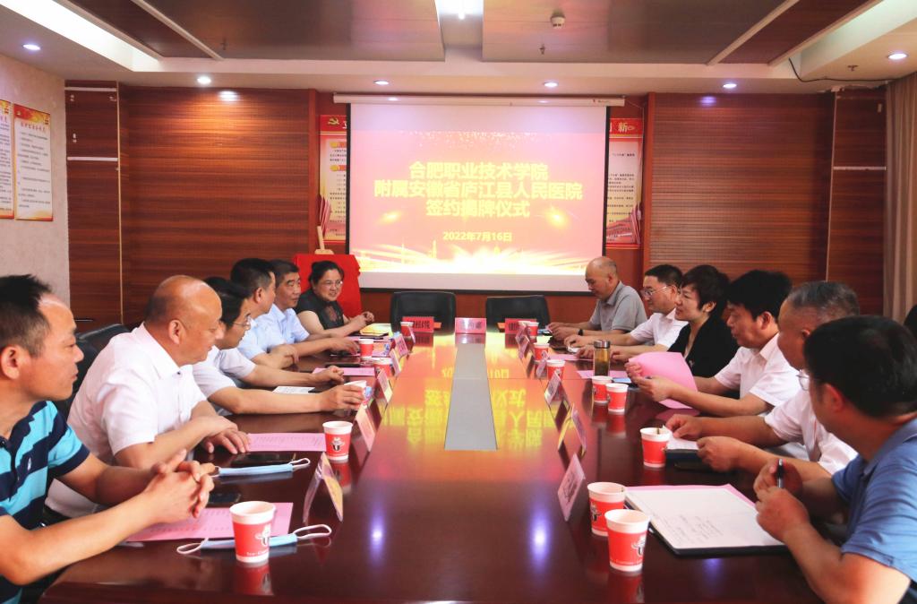 2022年7月16日上午,伟德官网第二所附属医院“伟德源自英国1946附属医院安徽省庐江县人民医院”签约揭牌仪式在庐江县人民医院隆重举行。这是校院双方深入贯彻安徽省“十四五”教育事业发展规划,拓展医教协同“朋友圈”,加快学校地方技能型高水平大学建设,促进我市县域卫生与健康事业发展迈出的坚实步伐。
