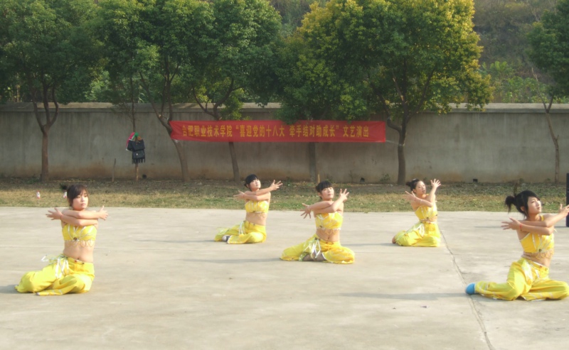 演出之前,银屏镇镇长章景培对我院师生的到来表示热烈的欢迎。演出在激情四射的爵士舞中拉开帷幕。歌曲《母亲》、《练习》、《听海》演绎地深情动人;相声让观众们捧腹大笑,现场气氛热烈;演员们通过《同喜同喜》、《竹林深处》等舞蹈把快乐传递给了观众;街舞和武术表演掀起了演出的高潮,现场掌声、喝彩声不断。