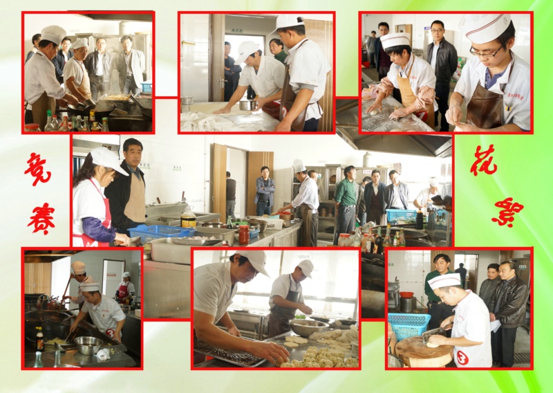 我院食堂首届烹饪技能竞赛于2012年11月2日下午在第一食堂教工餐厅举行。本次技能竞赛,是后勤集团“喜迎十八大”优质服务月系列活动之一。第一、第二食堂的8名选手组成的四个组分别参加了红案、白案竞赛。红案竞赛项目为家常豆腐、青炒土豆丝、红烧鱼块;白案竞赛项目为馒头、花卷、菜包。由后勤集团、工会、卫生所、学保处相关人员组成的评委组对竞赛项目进行了认真细致品评。红案选手孙礼奎、刘后高,白案选手何晖、王广如,分别获得优胜奖。