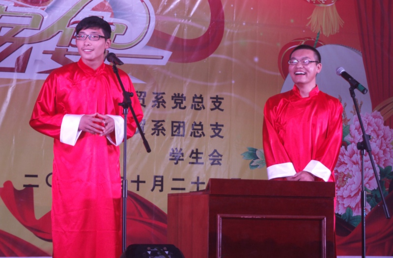 今年刚刚成立的祥云嬉笑社自编自演的小品《并非讽刺娱乐》,以其诙谐幽默的表演博得现场阵阵掌声,班级、社团的节目陆续登场,最后由街舞社团表演的舞蹈“以舞会友”,活力四射、激情飞扬,把晚会的气氛再次推向了高潮。