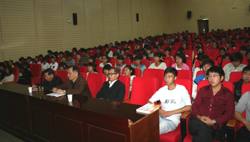 10月20日上午,我院本学期首场“素质教育大讲堂”报告会在大学生活动中心举行。这次报告会的主题是“巢湖文化”,由中国作家协会会员、中华诗词学会会员、原巢湖作家协会名誉主席朱鹤年主讲。副院长汤先觉、原学院党委副书记杨庆木、合肥市关工委巢湖指导组主任杨克典出席报告会。报告会由院党委宣传部部长周泽山主持。本场“素质教育大讲堂”由院宣传部、团委、关工委联合举办。