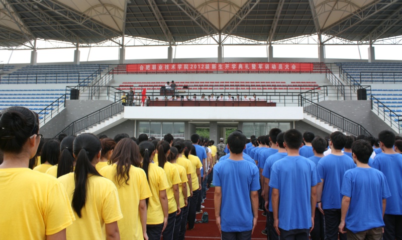 9月11日下午,2012级新生开学典礼暨军训动员大会在院田径场隆重举行。院领导丁家康、方志斌、茆书斌、胡其云、孙兴林、金辉、汤先觉以及淮南军分区国防动员基地主任孙树成出席了大会。各系(分院)、各部门负责人,各新生班级辅导员(班主任),全体新生、军训教官和部分教师参加了大会。大会由院党委副书记胡其云主持。