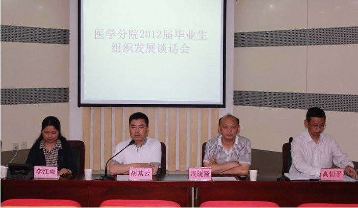 为进一步了解发展对象的情况,有针对性地帮助发展对象提高对党的认识,端正入党动机,确保党员发展质量,明确毕业后努力方向,近日医学分院党总支在学院图书馆一楼报告厅对分院拟发展为中共预备党员的109名毕业班发展对象举行了组织谈话会。学院党委副书记胡其云出席并作重要讲话。