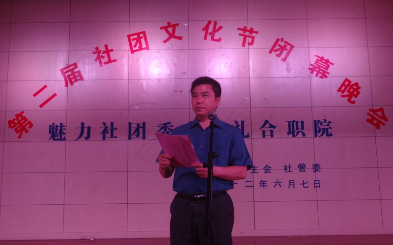 院党委副书记胡其云为第二届社团文化节致闭幕辞,肯定了各级党团组织、学生社团在社团文化节各项活动中付出的努力,并向受到表彰的社团和社团指导教师表示热烈的祝贺。同时也对社团发展提出了要求和希望:一、把握方向,正确引导,积极鼓励,加大扶持,形成学生社团“百花齐放、百家争鸣”的良好局面; 二、扩大参与,丰富内容,鼓励创新,突出社团特色,打造品牌文化;三、创新工作机制,加强规范化管理,提供学生社团发展的有力保障。