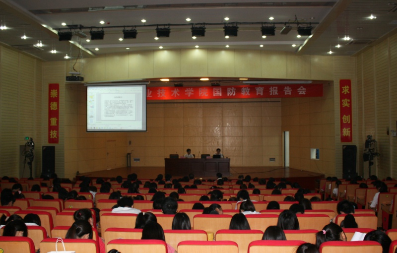 5月27日上午,院关工委、宣传部、学生(保卫)处和团委在院大学生活动中心联合举办一场“国防教育报告会”,近600名学生参加了报告会。中国作家协会会员、合肥市作家协会副主席王国刚受邀在会上作了“中国南海安全局势”形势报告。