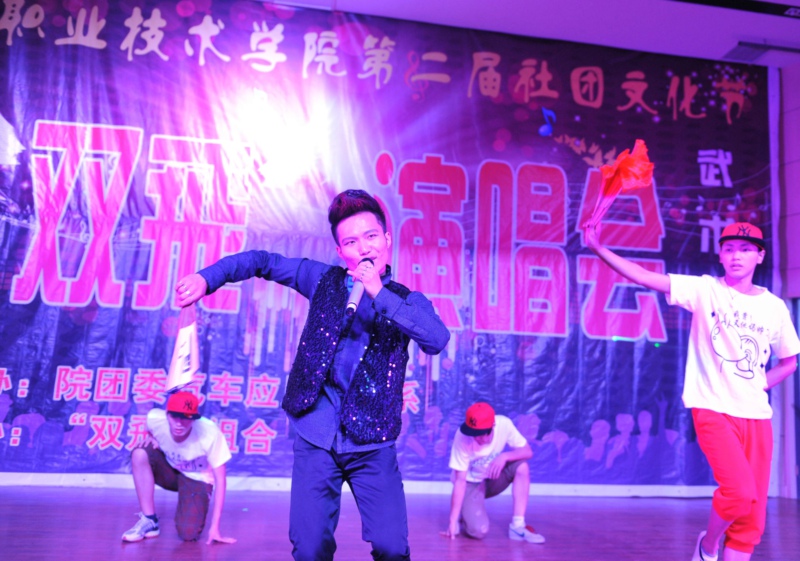 院团委副书记佘海月热情洋溢的致辞拉开了本届社团文化节的帷幕。歌伴舞《霍元甲》唱响了“双飞”演唱会。《闯码头》、《高原红》、《突然的自我》、《向往神鹰》等歌曲受到了台下观众的热烈响应,演唱会中穿插的小品《武馆招新》和《超幸福鞋垫》让现场笑声不断,演唱会在追梦音乐社社长杜飞和武术协会会长胡凤飞深情演绎的《我的好兄弟》歌声中完美落幕。
