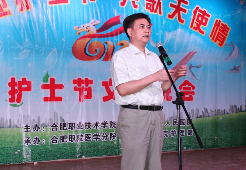 为庆祝第100个国际护士节,弘扬无私奉献、救死扶伤的南丁格尔精神,5月9日下午,由我院和巢湖市第一人民医院主办,我院医学分院和一院护理部承办的“喜迎护士节 共歌天使情”2012年护士节文艺晚会在我院大学生活动中心隆重举行。学院领导丁家康、方志斌、胡其云、孙兴林、金辉、汤先觉,巢湖市第一人民医院领导范自法、晏笑葵、孙会芹等与医学分院广大师生欢聚一堂观看演出。