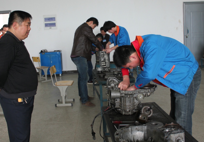 理论考试结束后,紧接着在工程楼汽车应用技术系实训中心进行各工种的技能实操考试。副院长孙兴林在汽车系负责人的陪同下,再一次来到各实训室查看鉴定情况,并要求各考评员严格按照鉴定程序和要求进行评分,尽职尽责、严肃纪律,做到公平公正。