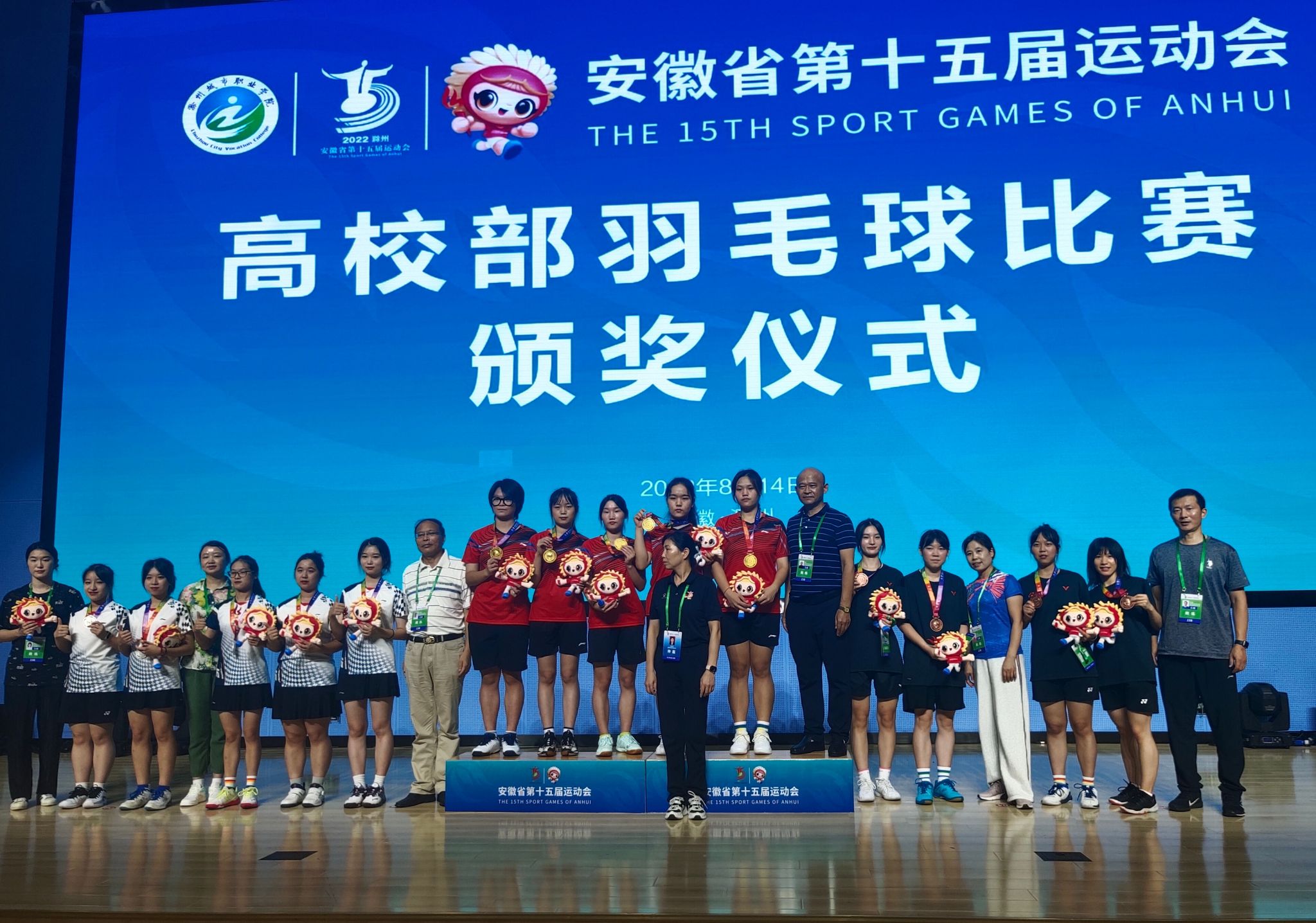 8月7日,安徽省第十五届运动会高校部羽毛球比赛在滁州城市职业技术学院体育馆开幕,省内各高校540名运动员齐聚滁州,共享羽毛球盛赛的激情与欢乐。比赛分甲、乙、丙三个组别,设男女团体、男女单打、男女双打、混合双打共七个项目。伟德官网由基础教育学院张海青老师领队,与教练员刘晶晶、韩明霞两位老师,带领羽毛球队9名运动员参加此次比赛。