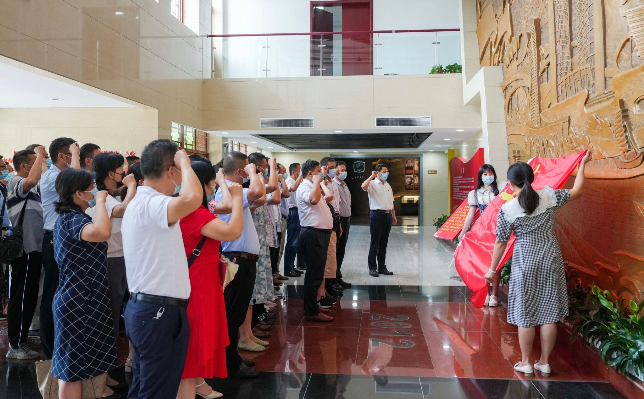 8月19日下午,全体参训干部来到中国共产党合肥历史馆接受红色教育,并重温入党誓词,在党旗下庄严宣誓。