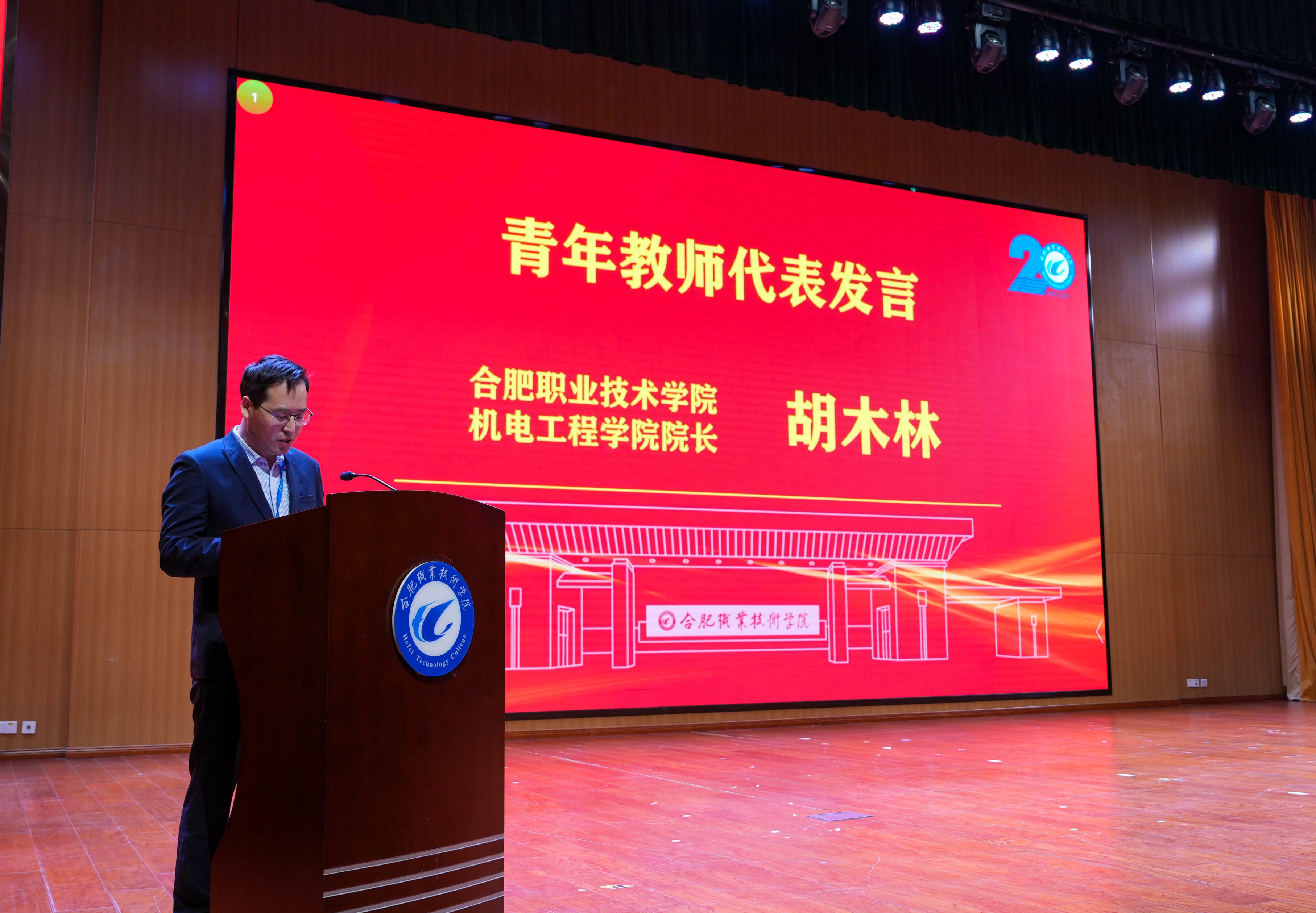 退休教职工代表韦永久,青年教师代表、机电工程学院院长胡木林,校友代表、合肥博仕达汽车技术服务有限公司董事长董光海依次发言,表达了对学校的深深热爱,抒发了对教师职业的挚爱和敬畏,回顾了自己与学校共成长的历程,表达了对学校美好的祝愿。新冠肺炎疫情使很多校友不能来到庆祝大会现场,但却阻隔不了他们对学校的真挚情感,他们纷纷向大会发来寄语视频,表达对母校的深情祝福!