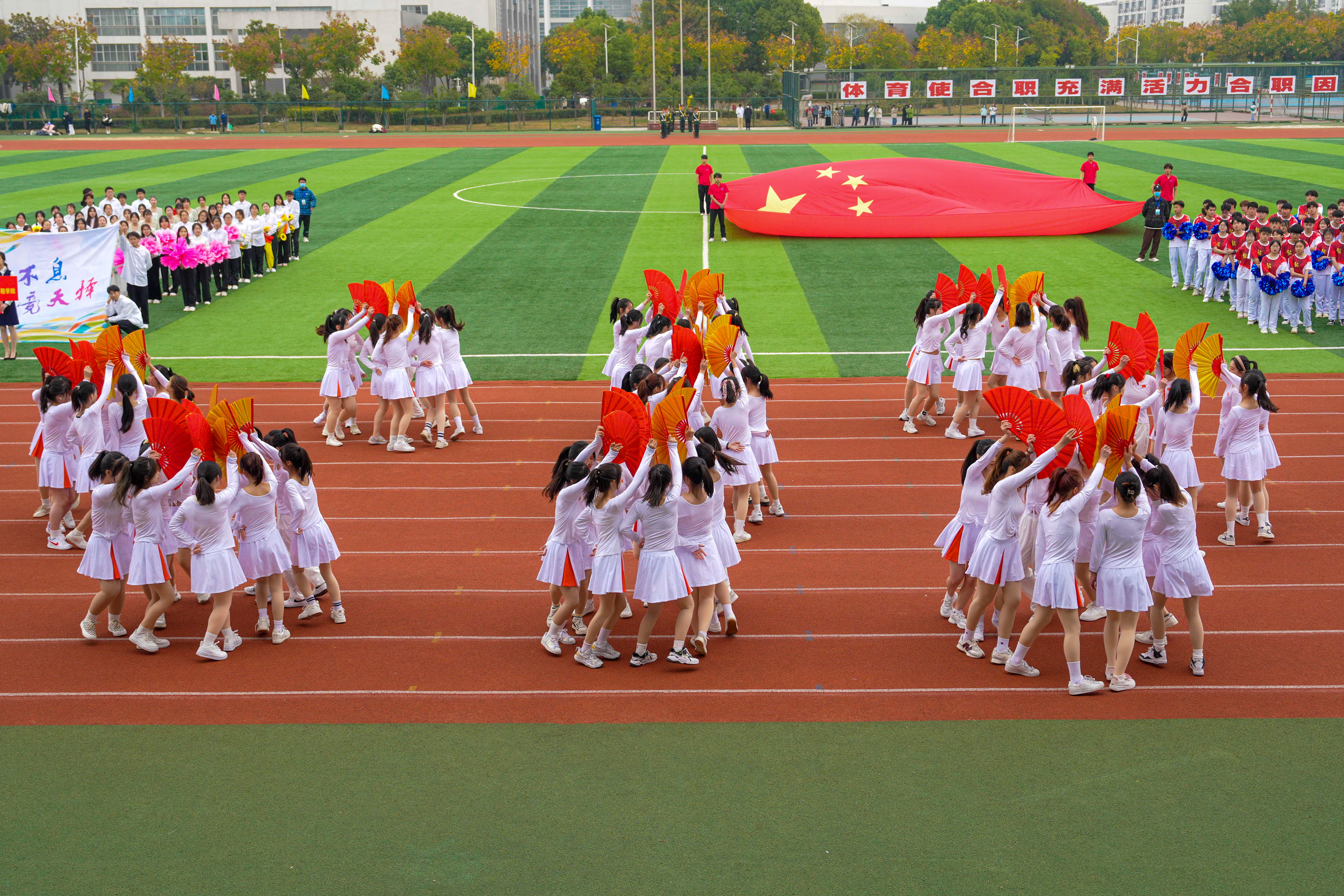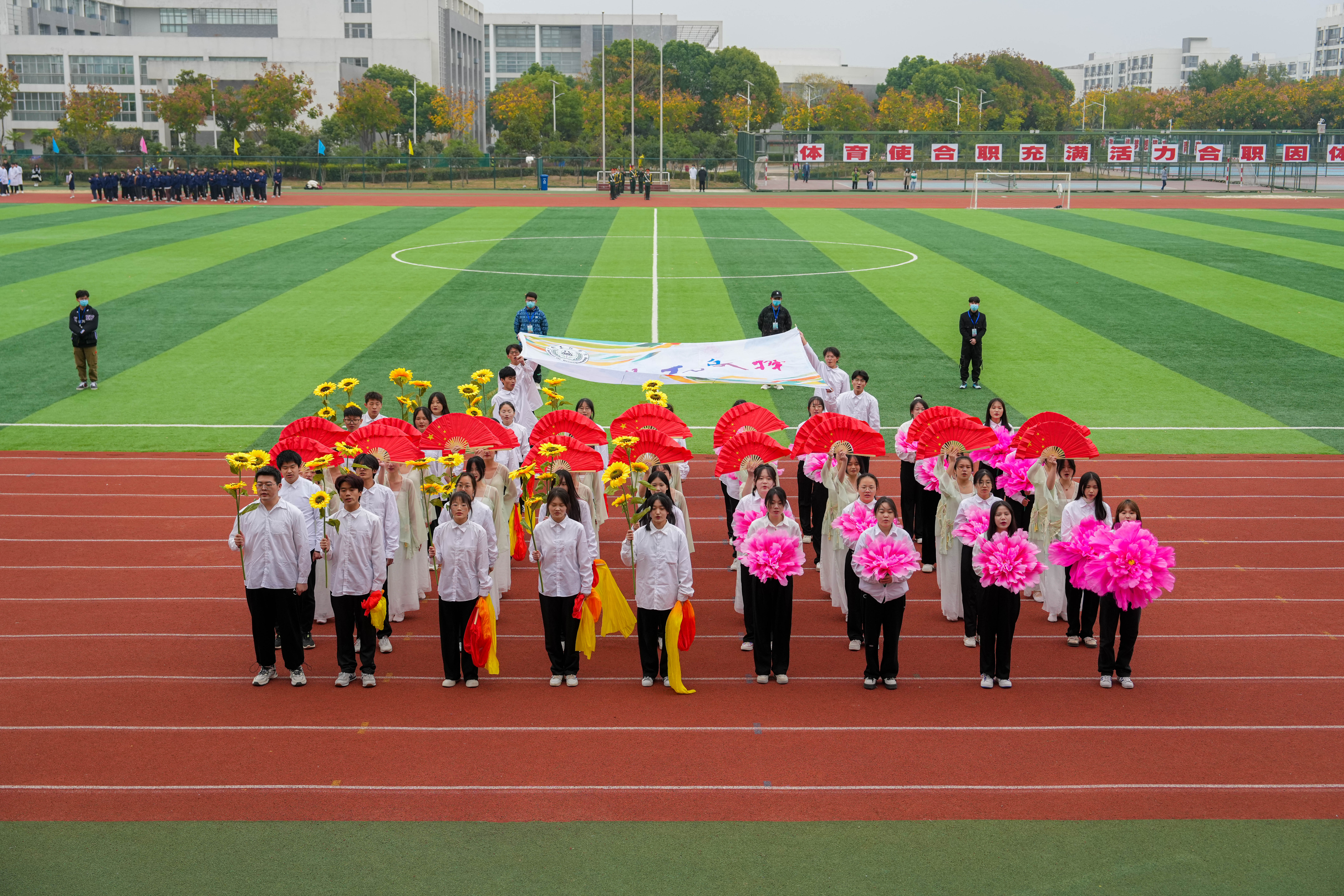 周晓隆为本届田径运动会致辞。他指出,体育是学校育人的核心内容之一。学校坚持贯彻习近平总书记关于体育工作的重要论述,坚守为党育人、为国育才的初心使命,大力培养德智体美劳全面发展的时代新人。近年来,学校加快推进高水平体育场馆设施建设,积极营造浓厚的校园体育文化,体育教育和竞技水平不断提高,获得省级以上体育赛事一等奖11个、二等奖15个、三等奖21个,体育文化节、各类体育比赛开展如火如荼,承办社会体育赛事水平、体育场馆设施对外开放程度逐年提高,在全校营造了一种热爱运动、健康生活的良好氛围。希望每位师生深入学习贯彻党的二十大精神,特别是深刻理解和切实践行党的二十大报告中对青年的殷切期望,不断为学校加快推进地方技能型高水平大学和职教本科建设作出更大贡献,让青春在全面建设社会主义现代化国家的火热实践中绽放绚丽之花!
