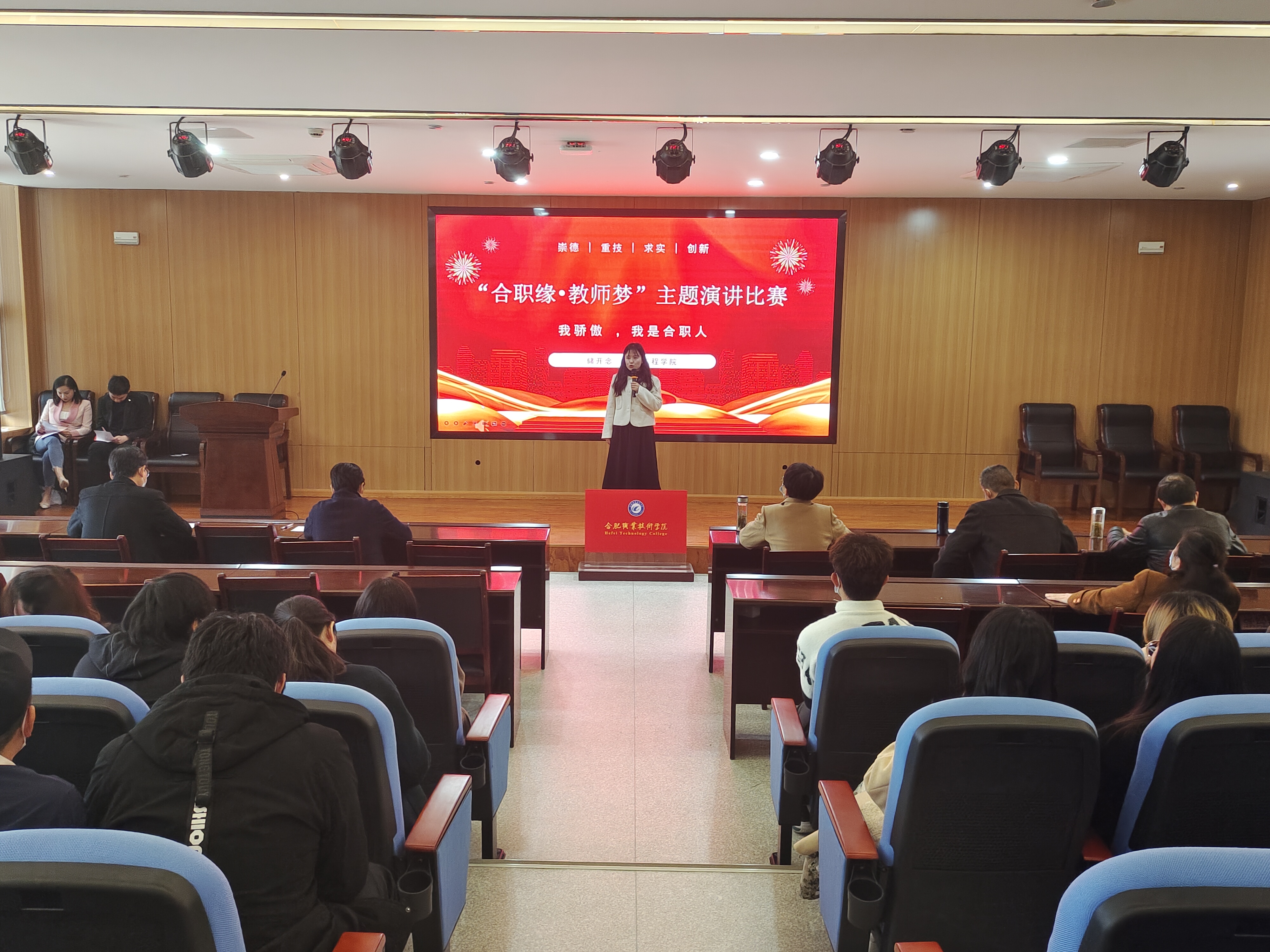 参赛的14位专兼职教师紧紧围绕演讲主题,结合工作职责和自身实际,以新颖的形式、充实的内容、饱满的激情、生动的语言,畅谈自己的合职缘、教师梦。因为热爱,所以喜欢并愿意为之付出所有。正如周莹老师在演讲中所说的:“喜欢合职,因为这里四时之景不同,如诗如画;因为这里付出有回报,真心有回应。感恩合职,因为这里有温度,每个人都很可爱;因为这里让我闪闪发光,充满力量。”