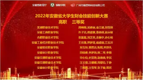 11月26日上午,由安徽省教育厅主办的“2022年安徽省大学生财会技能创新大赛” 圆满落下帷幕。伟德官网经贸旅游学院选派两支队伍参加该项赛事高职组的比赛,分别取得了省一等奖和三等奖,实现了伟德官网在该项赛事中连续四年蝉联一等奖的好成绩。