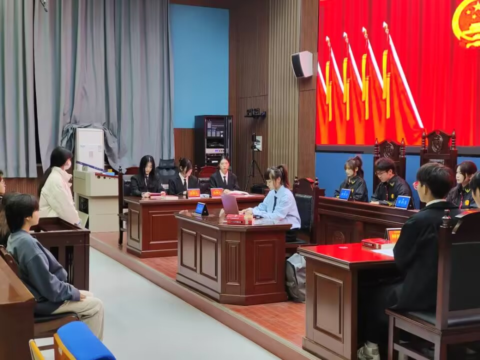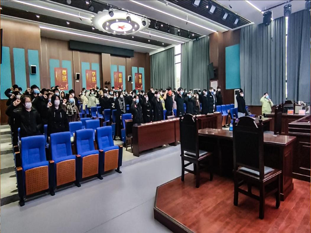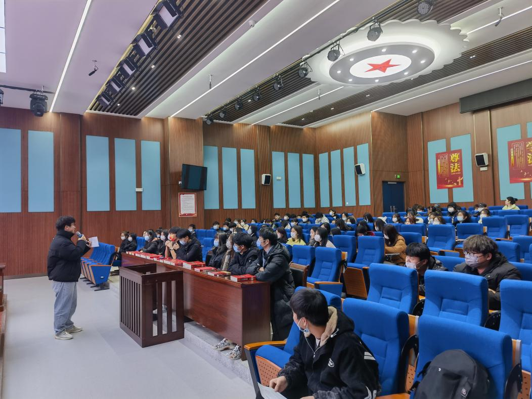 模拟法庭活动。12月4日晚,天平法学会模拟法庭活动在汇心湖校区北教学楼模拟法庭教室举行。
