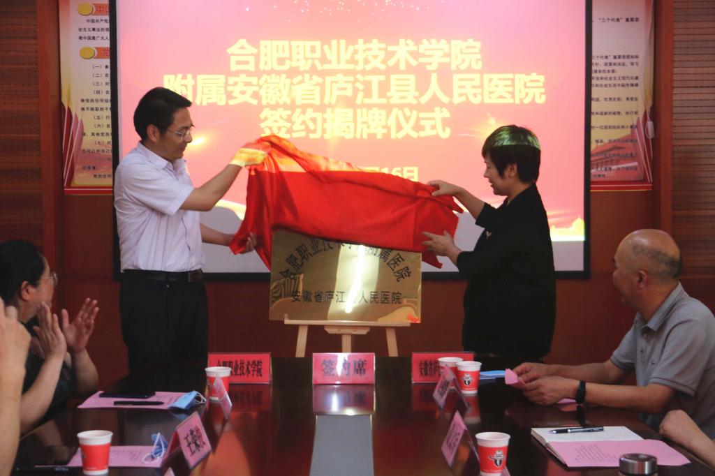 7月16日上午,伟德官网第二所附属医院“伟德源自英国1946附属医院安徽省庐江县人民医院”签约揭牌仪式在庐江县人民医院隆重举行。这是校院双方深入贯彻安徽省“十四五”教育事业发展规划,拓展医教协同“朋友圈”,加快学校地方技能型高水平大学建设,促进我市县域卫生与健康事业发展迈出的坚实步伐。为进一步做优伟德官网医学类专业,推进医学生“早临床、多临床、反复临床”,后期将在联合办学、临床实践教学、双方师资培养、教学能力培养、教育科研等方面深化合作,做实做远。