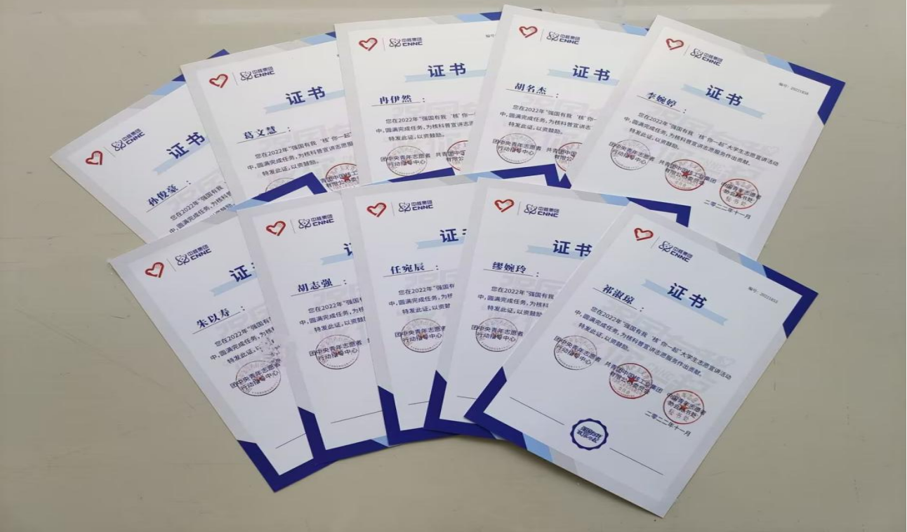 赵倩倩、宋晓姣两位指导老师带领10名志愿者参加此活动,在活动中团队分工明确,成员积极配合,互相帮助,严于律己,相互理解。志愿宣讲员以实际行动助力“双碳”理念的科普和“两弹一星”精神宣传主题活动,获得了主办方的认可,主办方为为10名志愿宣讲员颁发了嘉奖证书。