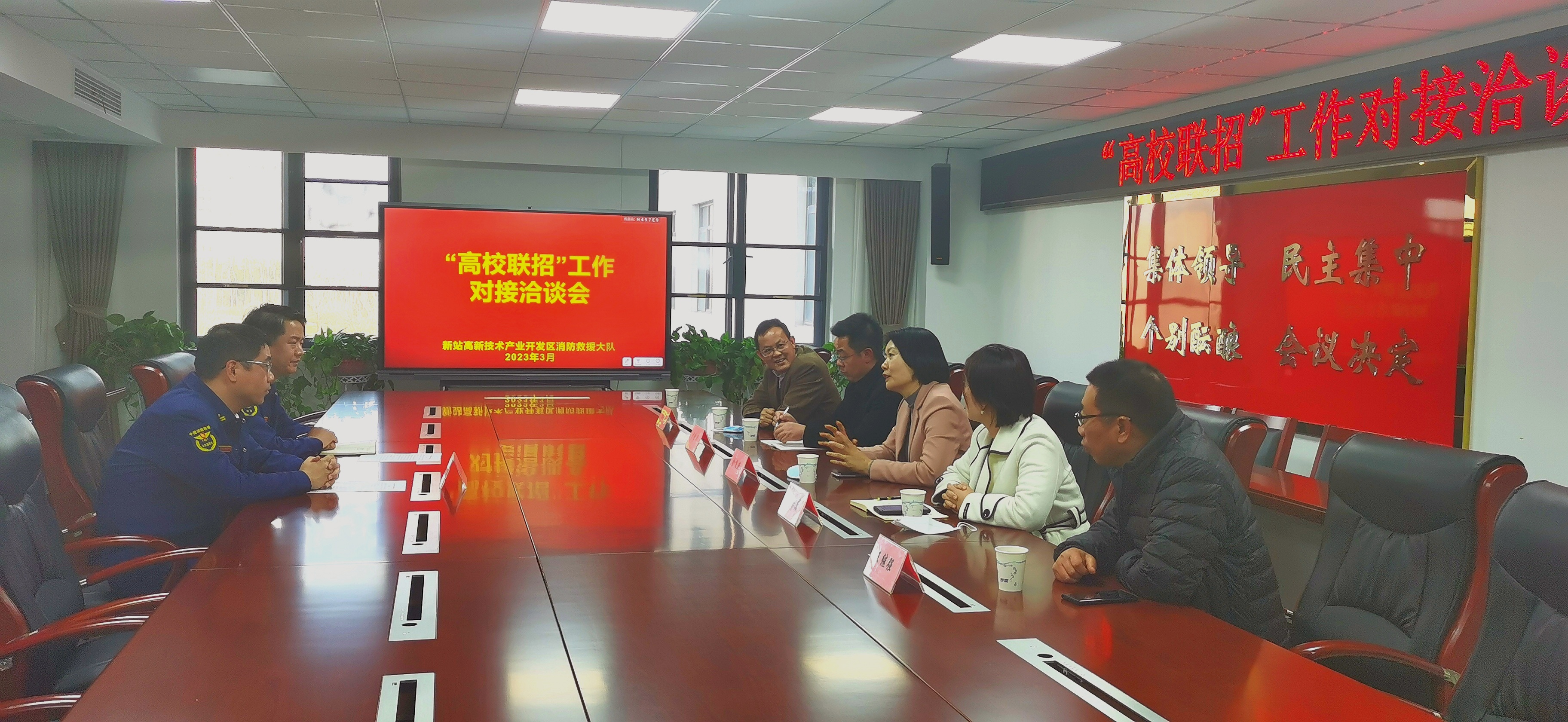 为深入调研建筑消防行业产业发展形势,单位用人标准与需求,同时进一步加强与属地沟通联系,3月7日,伟德官网党委副书记金飞燕带队赴合肥新站高新区消防救援大队洽谈合作。3月8日,安巢经开区消防救援大队应邀来伟德官网鼓山校区管委会开展洽谈合作。保卫处处长谭连生、学生处处长尹宗平、轨道交通学院党总支书记佘海月、轨道交通学院副院长劳志鸿等参加洽谈会。