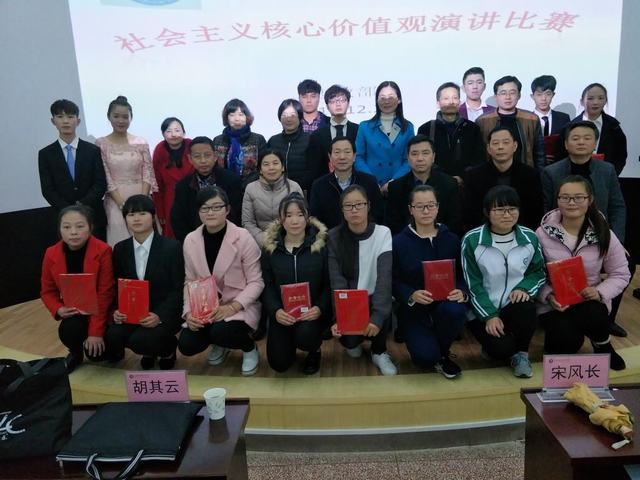 虽是冬日严寒,但这里却充满了爱、温暖和正能量,场上座无虚席。大赛在主持人的报幕声中拉开了序幕。经过前期初赛选拔,全院共12位学生参加此次决赛。参赛选手各自将自己精心制作的“弘扬和践行社会主义核心价值观”PPT进行了现场展示,并进行了声情并茂的演讲,演讲的大量素材是学生们在现实生活中获取收集的真实资料。他们从国家、社会与个人层面,从传统文化、民族精神、家国梦想、学会感恩、最美“合职人”等不同角度诠释了对社会主义核心价值观的理解,凝聚了学生对社会主义核心价值观的真诚感悟,情真意切,感人肺腑。