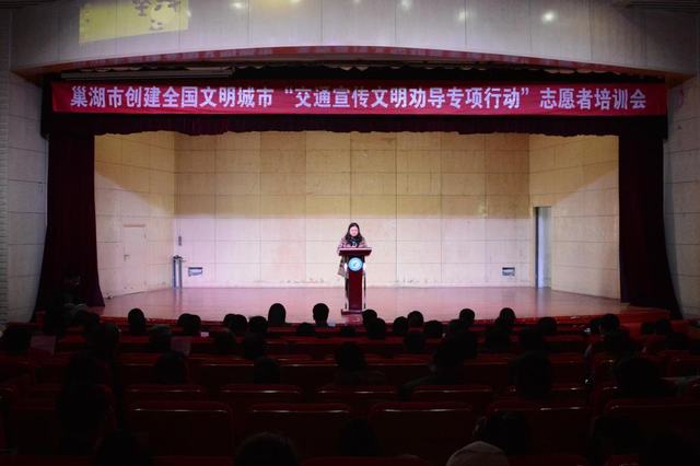 为推进巢湖市创建全国文明城市工作,优化城区交通安全秩序。同时,为进一步推动全民参与,合力营造浓厚创城氛围,巢湖市将于2017年4月至7月在城区主要灯控路口及重要路段开展“争做志愿交警,文明从我先行”交通宣传文明劝导专项行动。为确保此项工作的顺利开展,“交通宣传文明劝导专项行动”志愿者培训会于4月10日下午在我院大学生活动中心二楼礼堂成功召开。我院300余名志愿者与巢湖市直单位100余名志愿者共同参加培训。培训会由巢湖团市委副书记陈敏艳主持。