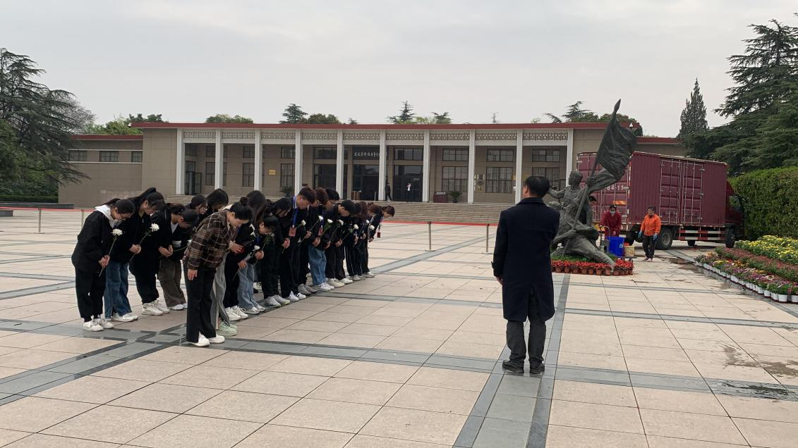 在庄严肃穆的氛围下,同学们在悼念广场统一排好队伍,全体立正,所有人向革命烈士默哀三分钟,并向烈士行三鞠躬。“家国又清明,鲜花献英烈!”全体成员手持菊花,缓步走向革命烈士纪念碑,将花篮敬放在纪念碑前。深刻缅怀为争取民族独立和人民解放,实现国家富强和人民幸福矢志奋斗、无私奉献、英勇牺牲的英烈们。