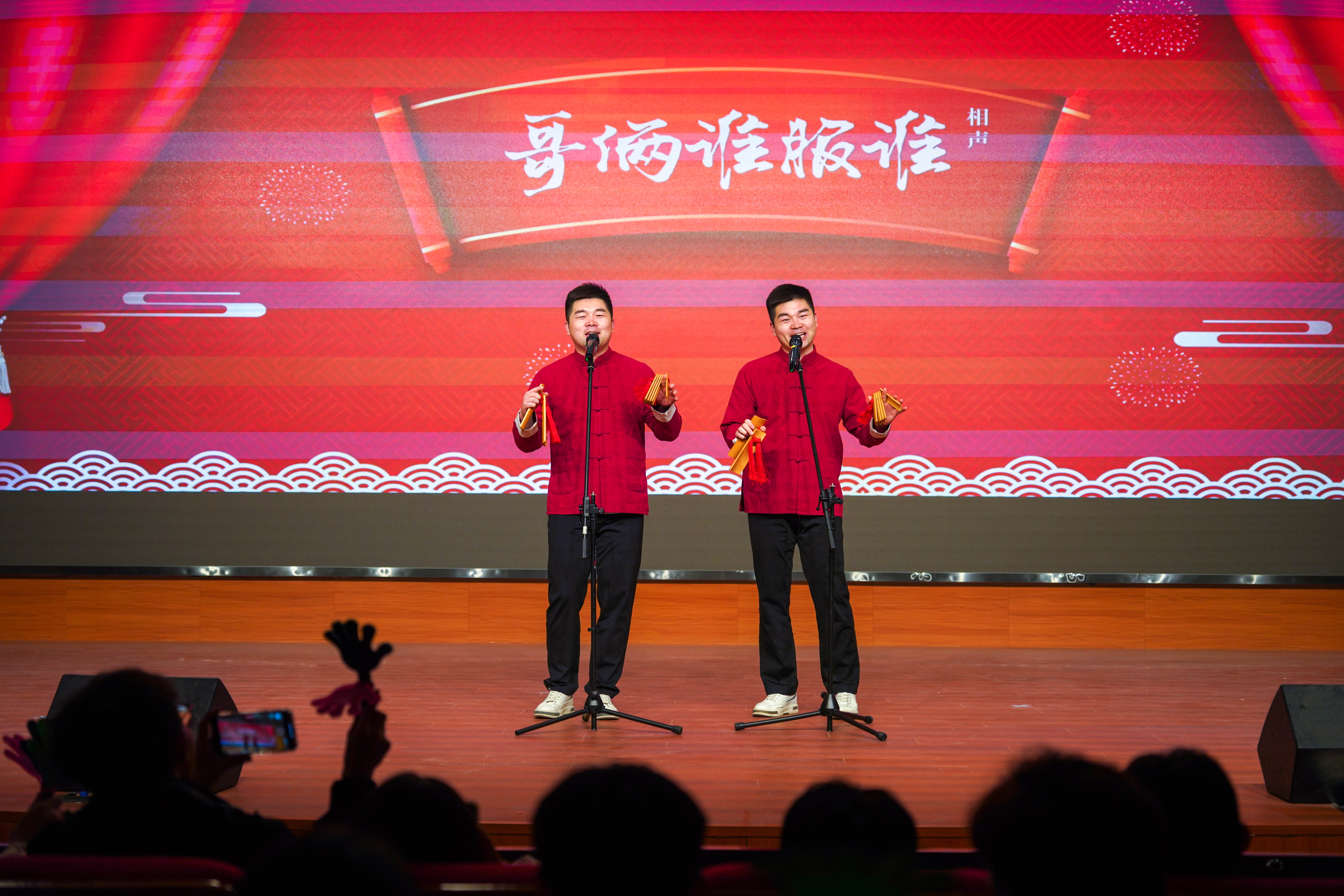 “我对戏曲表演非常期待!”“变脸这个节目应该很好看!”“特别想现场听听相声!” 下午3时30分,演出正式开始,现场座无虚席。身着锦衣霓裳带来器乐合奏《庐州韵》的演员一经亮相,便收获了来自师生的阵阵欢呼,不少观众纷纷举起手机记录下美妙的演出时刻;随后上场的戏曲联唱、相声演出、变脸等形式多样、内容丰富的节目,更是掀起了现场气氛的高潮,众多学生手持“小手拍”,不断发出热烈掌声。整场演出,台上精彩纷呈,台下欢声笑语,合职师生共享了一场星光现璀璨,银河落人间的文艺盛宴。