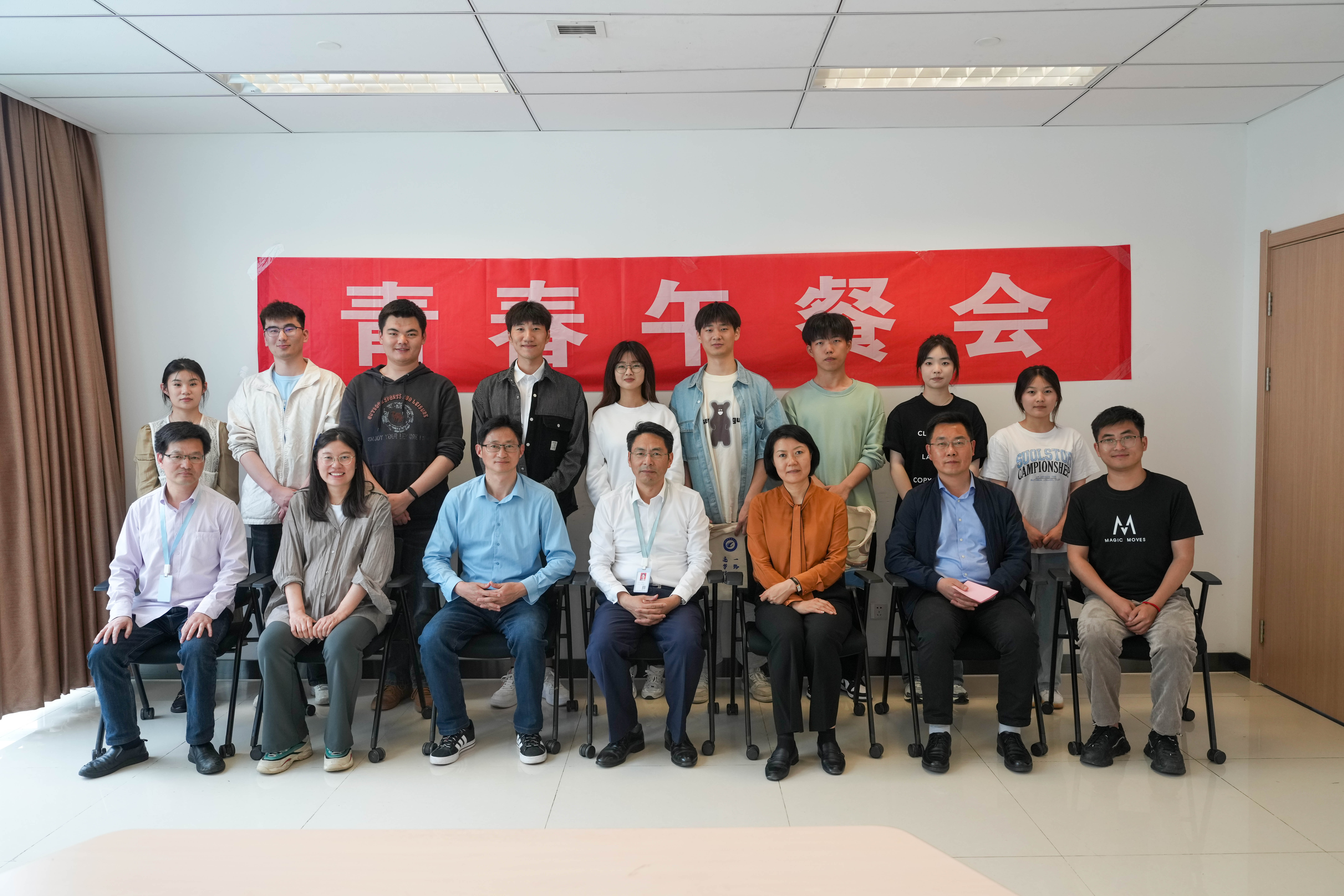 王杰才寄语现场的青年学生:习近平总书记在党的二十大报告中对我们的青年的寄语是这样的:有理想、敢担当、能吃苦、肯奋斗,这也是针对当下国际国内形势对大家提出的基本要求,躺平是没有出路的,应该抓住我们青春这个高光时刻,制造我们人生当中奋斗的巅峰。青春正当时,也是为我们未来的奋斗积攒能量正当时,希望各位青年都能够努力奋斗,成长为未来国家建设的栋梁。餐后,王杰才为同学们提笔寄语,金飞燕代表校党委向同学们赠送了青年节的礼物,并与大家合影留念。