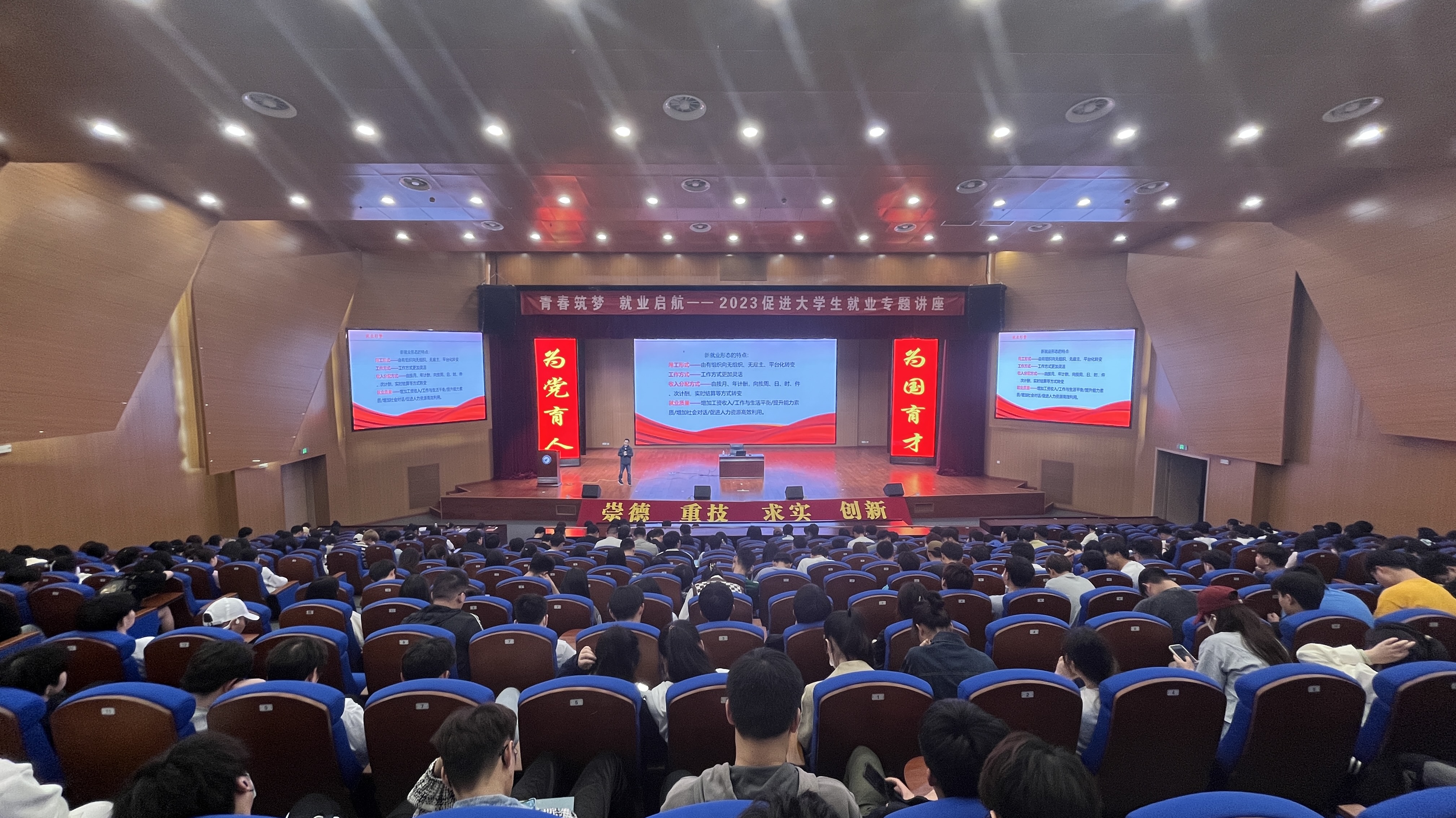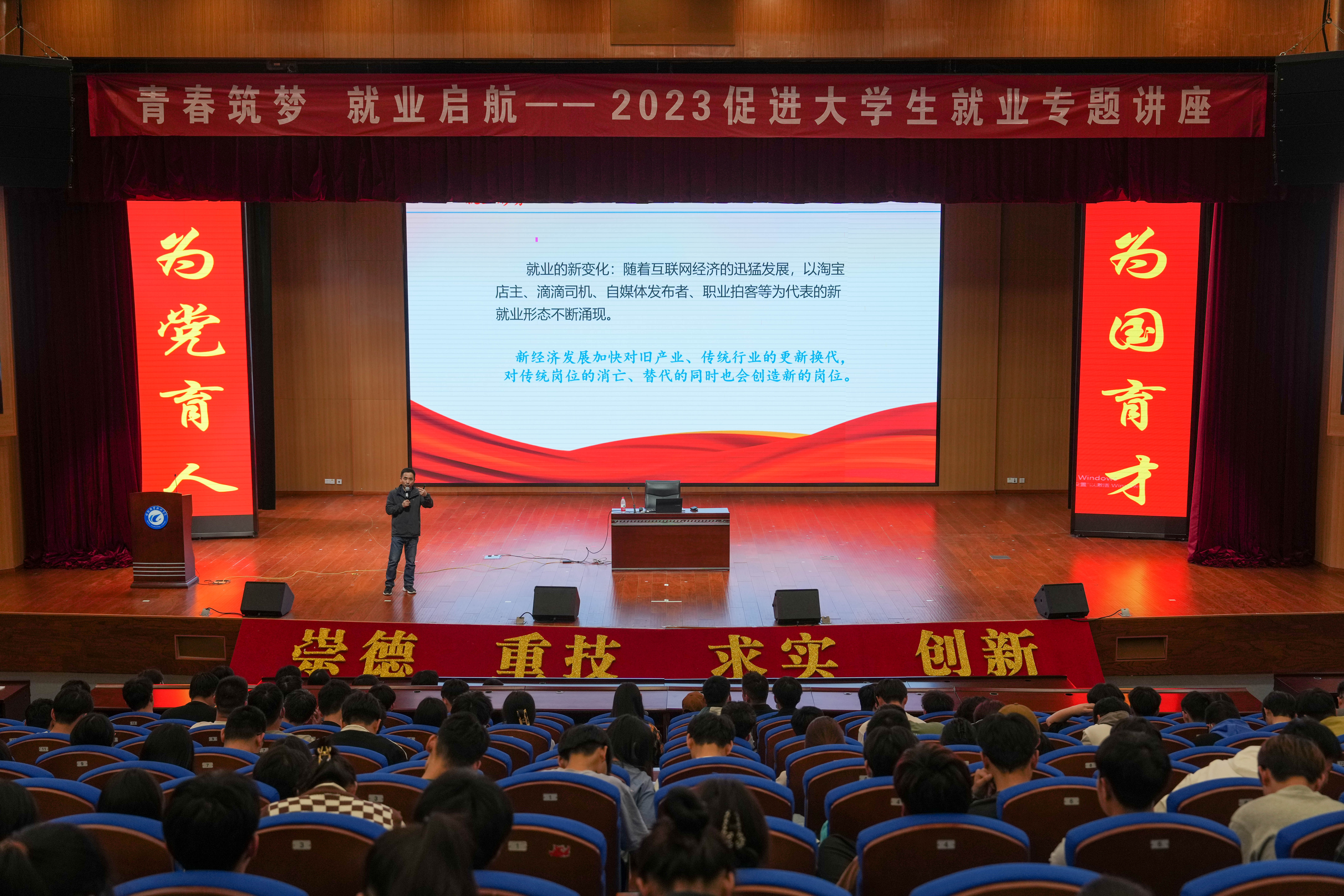 为深入贯彻落实党的二十大精神和中央经济工作会议提出的“落实落细就业优先政策,把促进青年特别是高校毕业生就业工作摆在更加突出的位置”,根据《2023年安徽共青团促进大学生就业行动方案》和《关于联合开展大学生就业创业促进行动的通知》(皖青联〔2023〕6号)要求,发挥共青团促进大学生就业创业助推力,5月4日下午,校团委在汇心湖校区和鼓山校区同时组织开展“青春筑梦 就业启航”2023年促进大学生就业专题讲座,1000多名学生现场聆听了讲座。