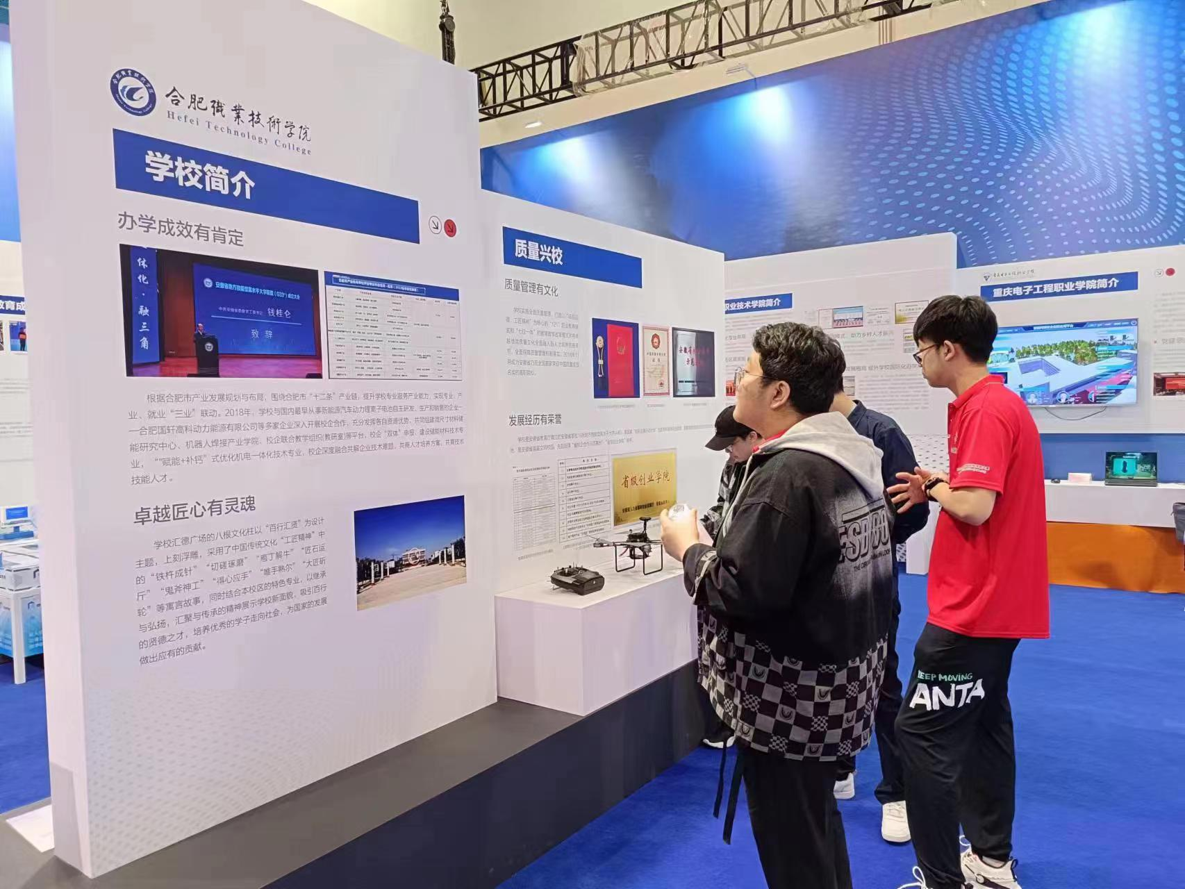5月14日上午,2023年职业教育活动周全国启动仪式暨全国职业院校技能大赛开幕式在山东潍坊举行。教育部党组书记、部长怀进鹏讲话并宣布活动周启动、技能大赛开幕。活动周启动仪式现场开设了“中国式现代化道路上的职教力量”主题展区,包含制造强国、绿色低碳、乡村振兴、“一带一路”等八个主题。伟德官网根据省教育厅统一安排,作为安徽省四所高职院校代表之一,参加了“制造强国”主题展。
