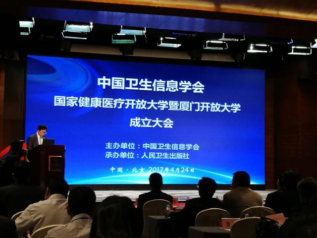 4月24日,由中国卫生信息学会主办、人民卫生出版社承办的“国家健康医疗开放大学暨厦门开放大学成立大会”在京召开。国家卫生和计划生育委员会副主任、中国卫生信息学会会长金小桃及卫计委规划与信息司、科教司等相关司局负责人,教育部高等教育司司长张大良、厦门市副市长卢江、中国工程院王辰等院士,部分高等医药院校院(校)长和医院院长等领导专家代表300余人出席会议。我院副院长周晓隆教授作为理事应邀参加成立大会。