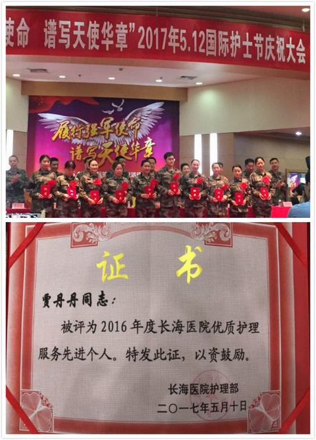 2016年被长海医院护理部评为“长海医院护理服务明星”,2017年被评为“2016年度长海医院优质护理服务先进个人”称号。工作三年中获得锦旗一面,病人感谢信数封。