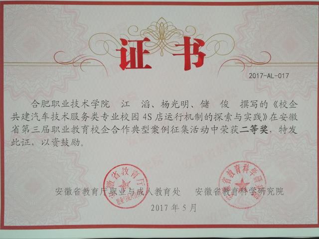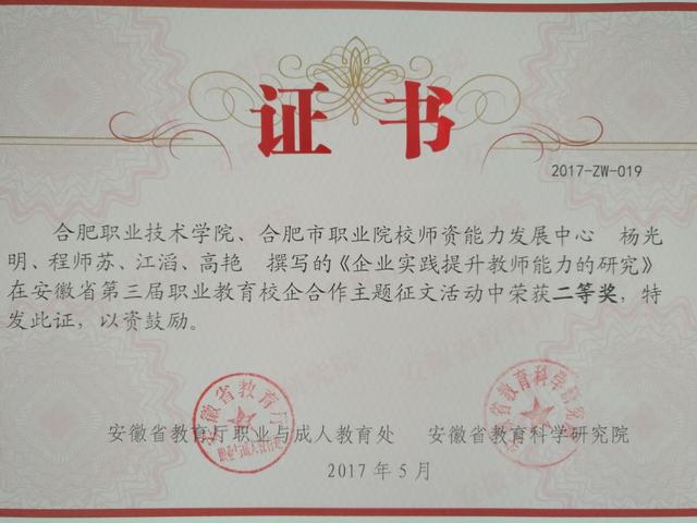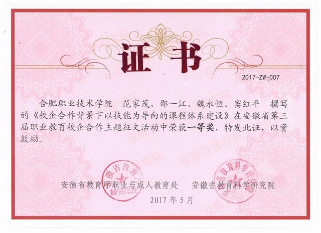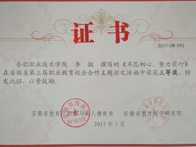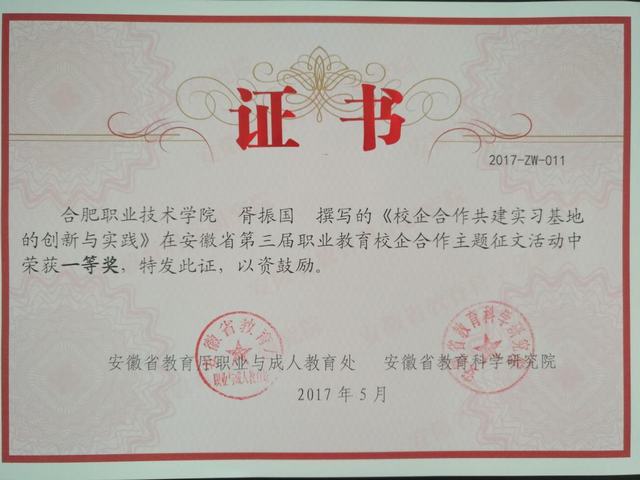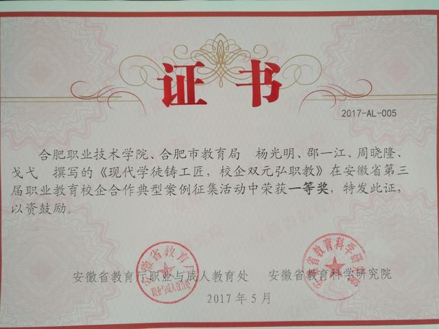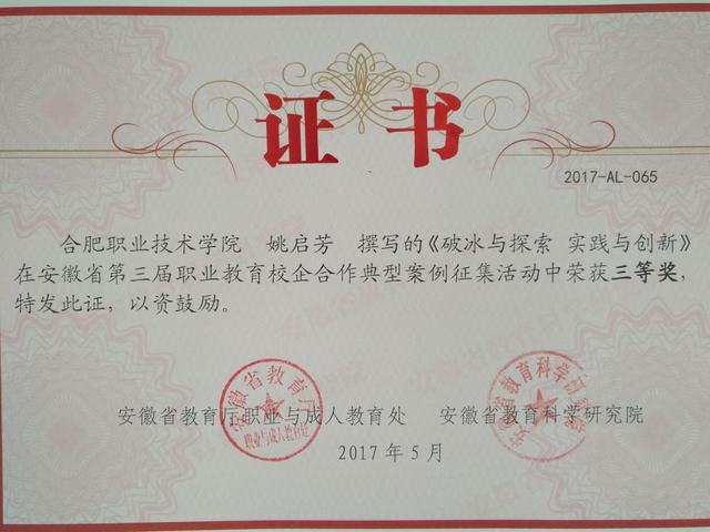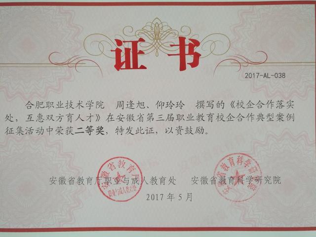 日前,在安徽省教育厅、安徽省教育科学研究院联合举办的“第三届安徽省职业教育校企合作典型案例征集和主题征文”评选中,伟德官网选送的8篇作品取得了3个一等奖,3个二等奖,2个三等奖的优异成绩。