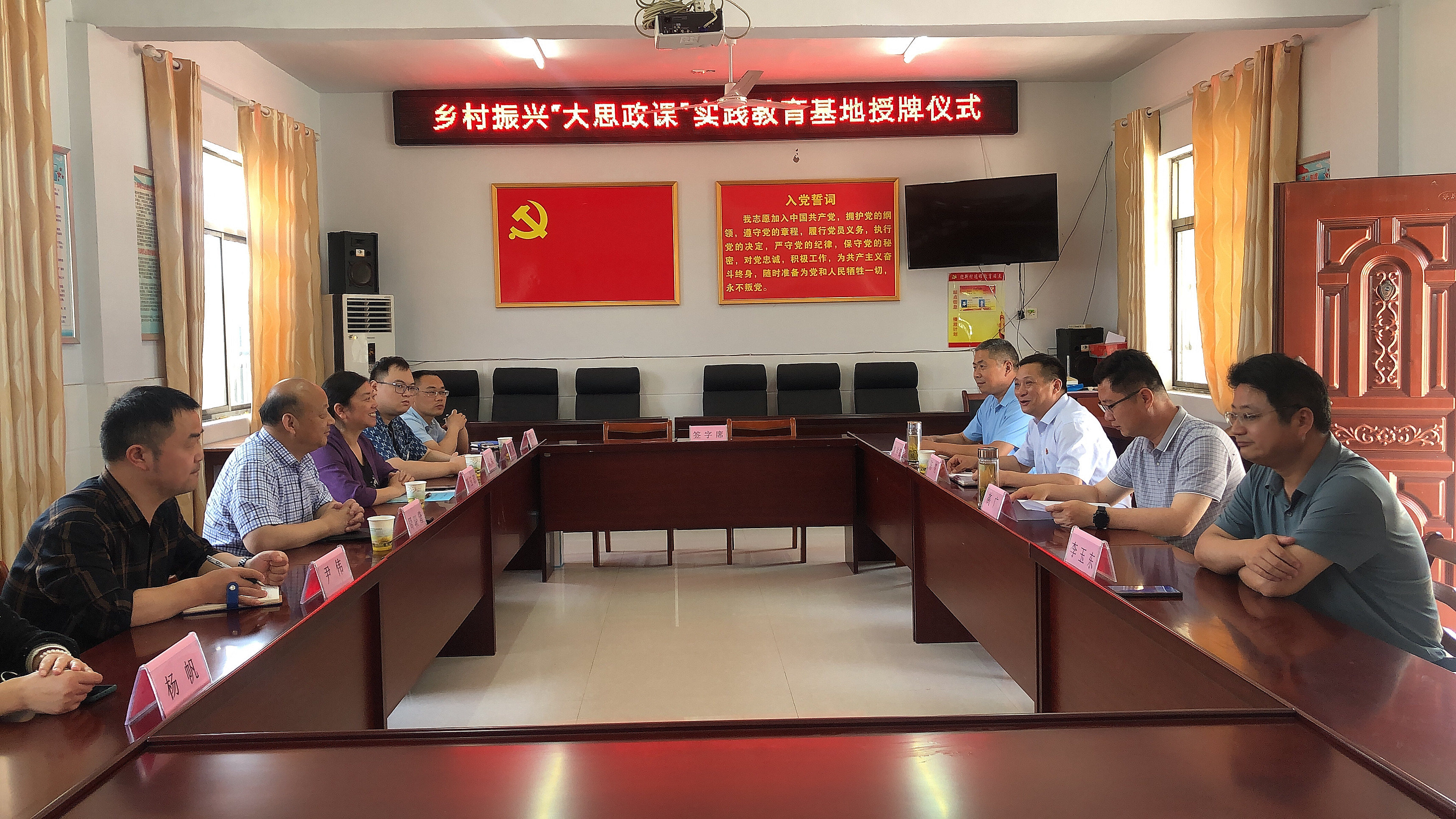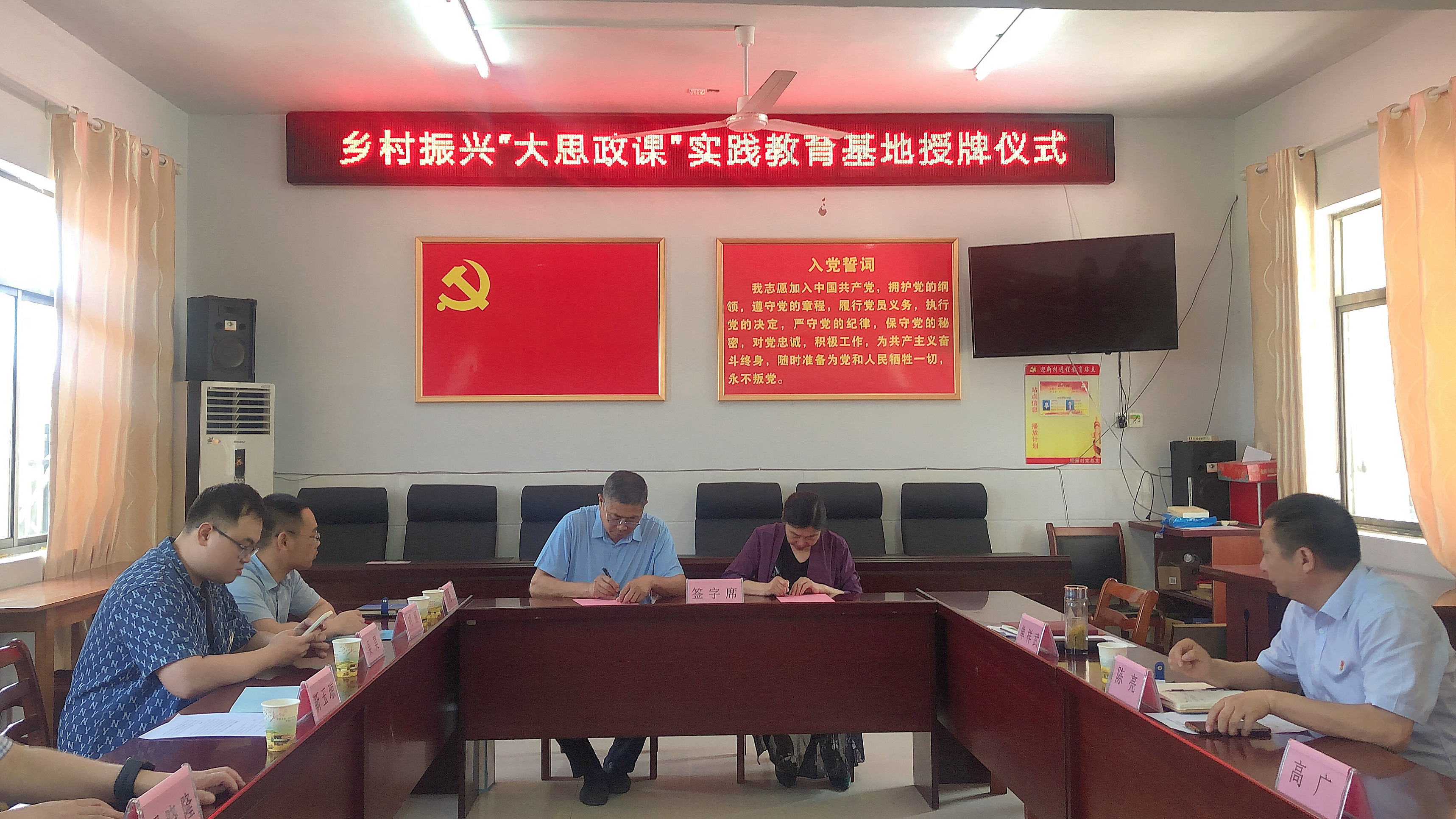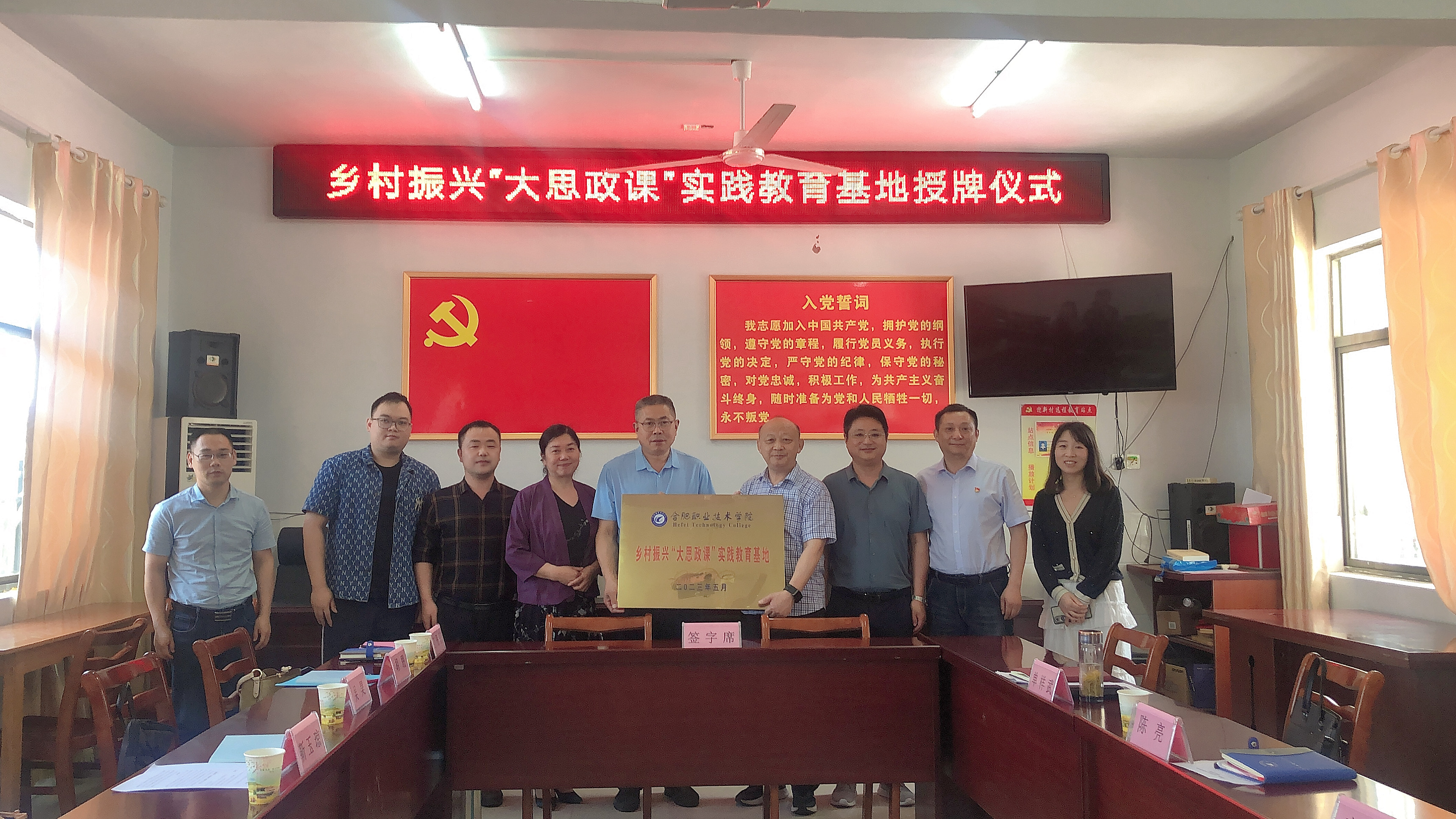 为深入学习贯彻习近平新时代中国特色社会主义思想,全面推进学校“大思政课”体系建设,5月31日伟德官网与长丰县杜集镇迎新村签订乡村振兴“大思政课”实践教育基地共建协议,并顺利举行授牌仪式。杜集镇党委书记高广、党委委员李玉东、迎新村驻村第一书记陈亮、村书记单祥武,校党委委员、副校长周晓隆,科技处尹伟博士,马克思主义学院院长靳玉琼等人参加了活动。
