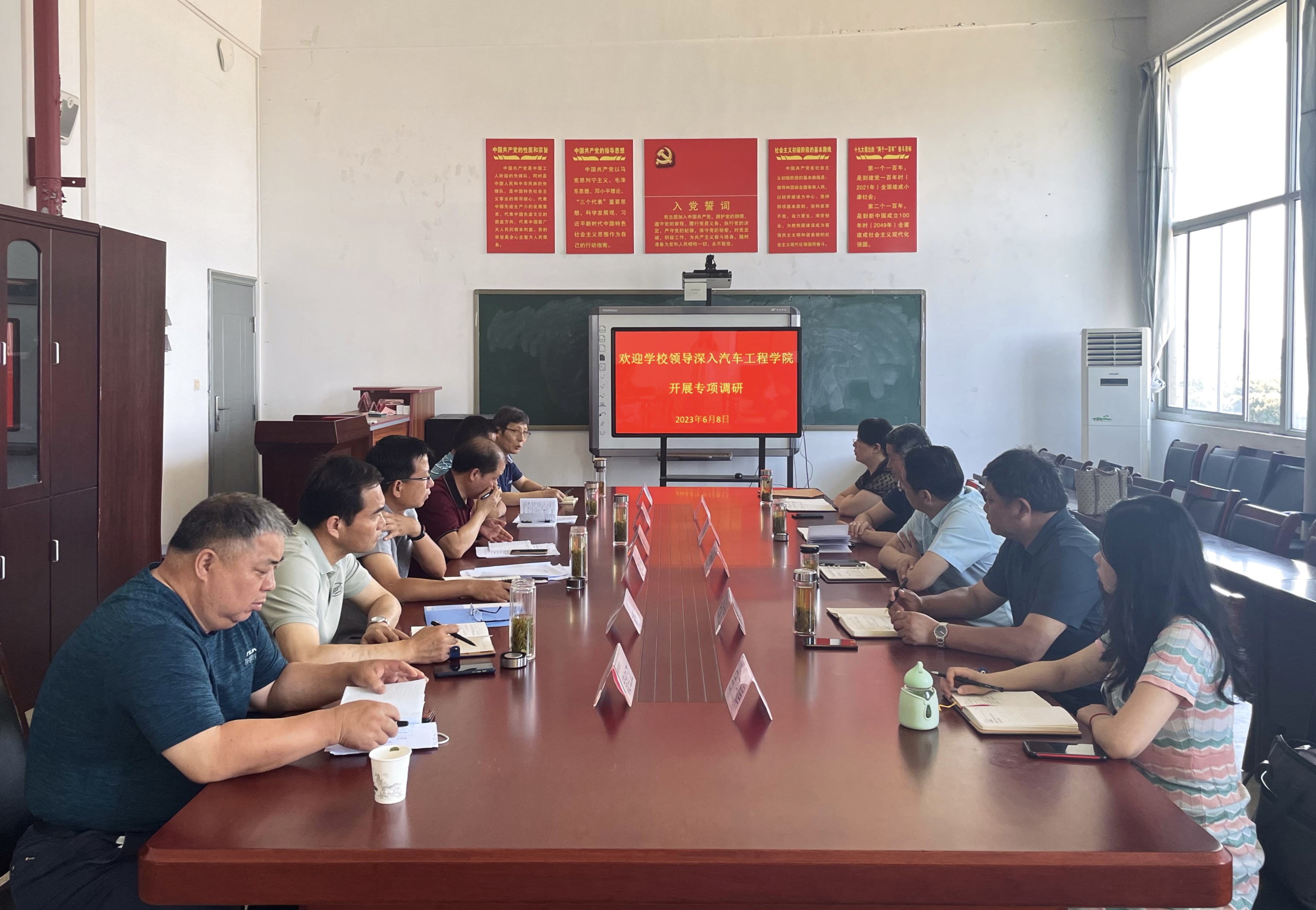 为全面贯彻落实党的二十大精神,深入学习习近平总书记在二十届中央纪委二次全会上的重要讲话精神、省纪委十一届三次全会精神和市纪委十二届三次全会精神,持续深化“一改两为”,根据中央、省、市委关于开展大调研活动的统一部署和《市教育局党委开展“强党性 严纪律 立规矩”专项活动工作方案》要求,6月1日-6月8日,校党委书记王杰才率调研组深入11个二级学院围绕“党政联席会议制度”“三重一大”事项决策制度建设和执行情况、全面从严治党及高层次人才工作开展专题调研。