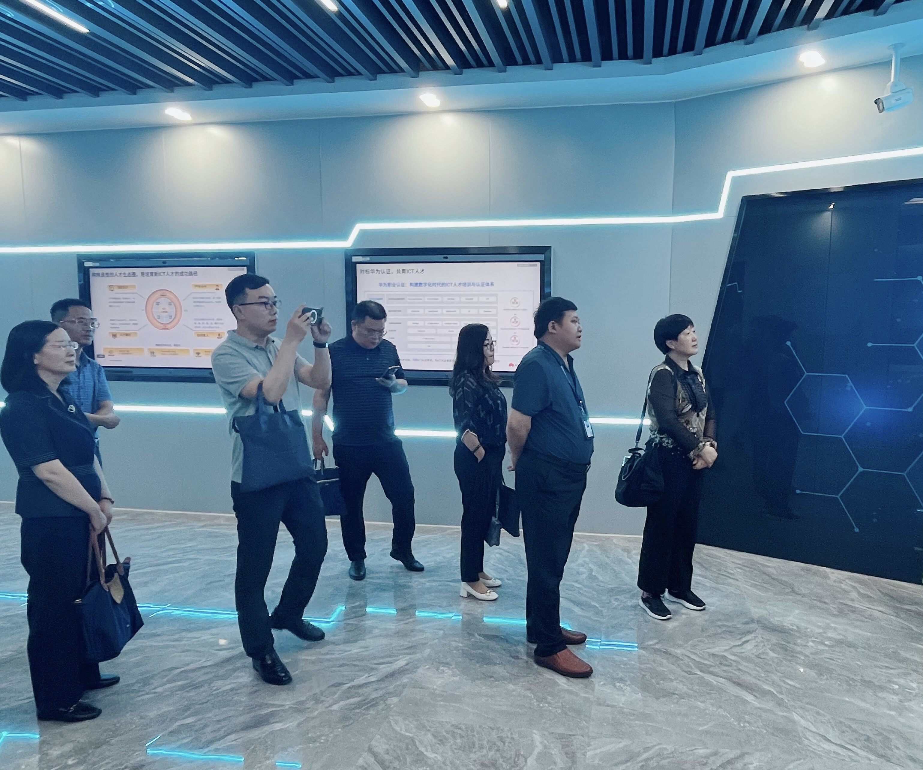 期间,段开梅一行先后考察参观了学校新一代信息技术产教融合实训基地、机电综合实训室和轨道综合实训室。