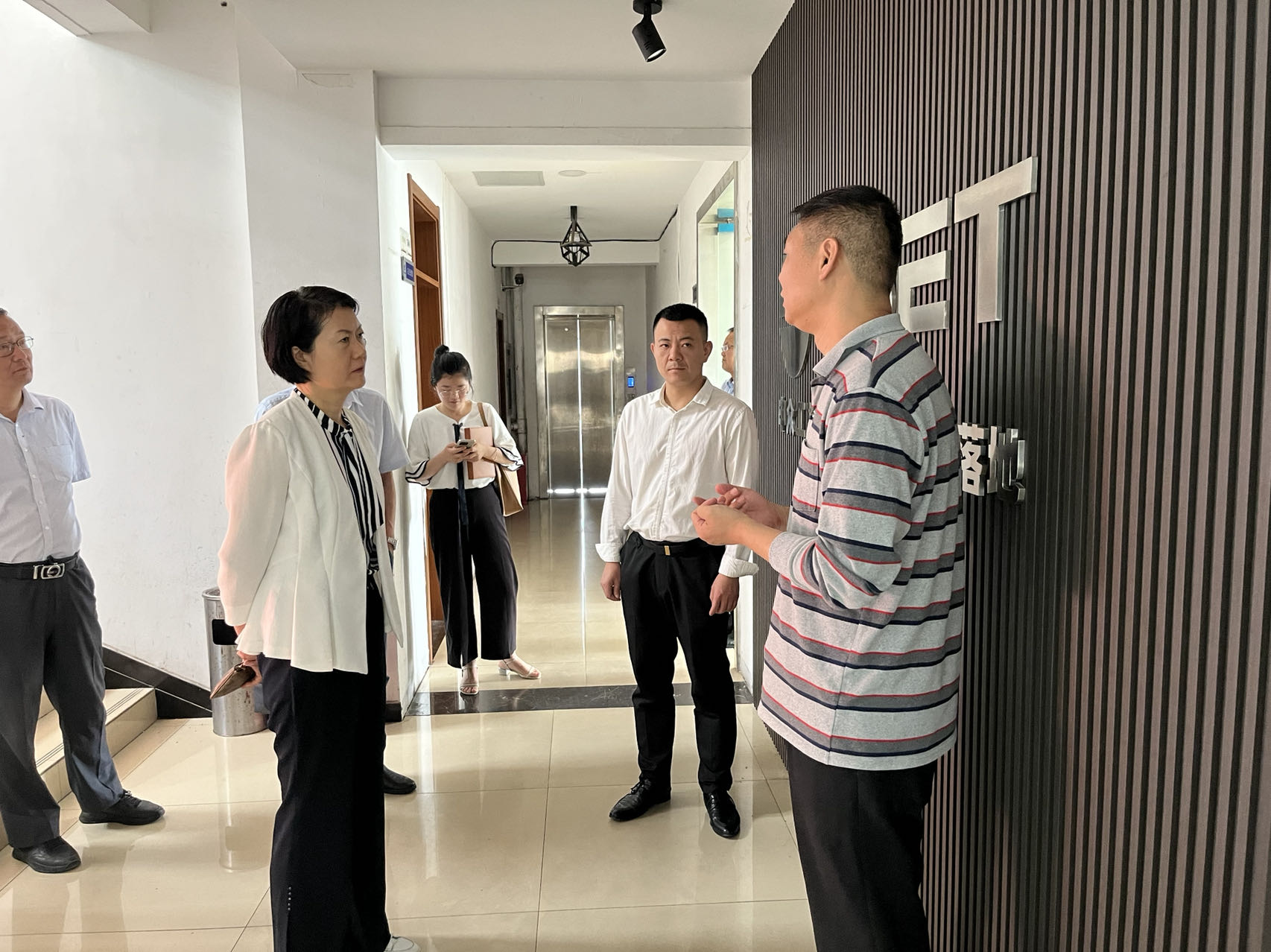 调研中,金飞燕逐户走访了园区入驻企业,并与部分科技企业负责人进行了交流,听取了他们的创业故事和企业发展计划。然后又深入到“大学生创新创业中心一期”在建项目工地,实地查看了项目建设情况,与项目施工单位就建设进度、工程质量做了深入了解。