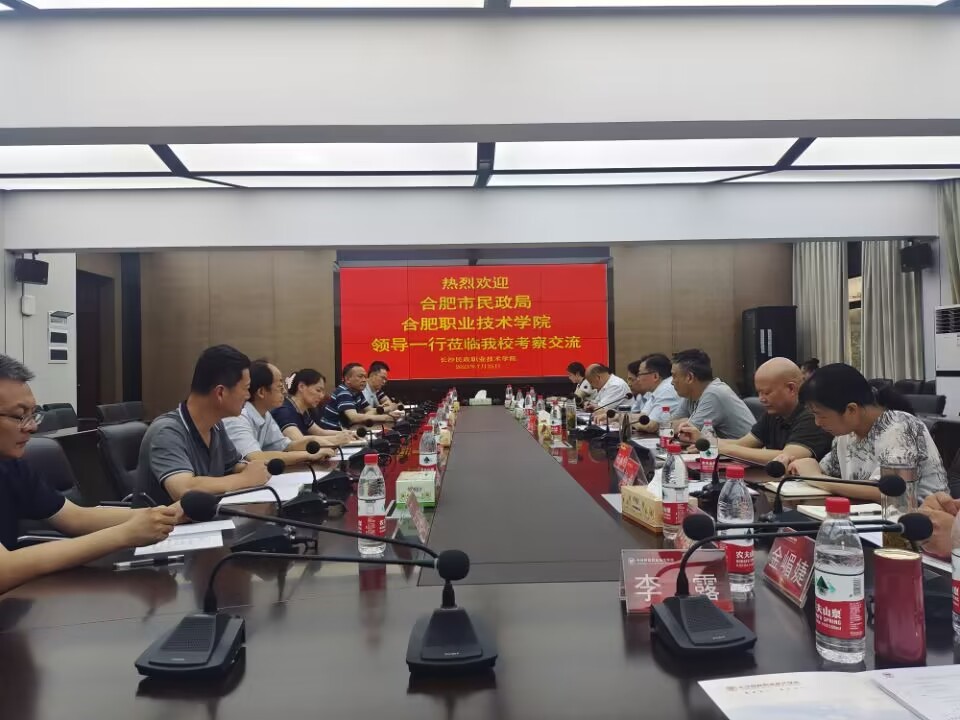 为学习借鉴先进办学经验,加强伟德官网民政类专业建设和人才培养工作,推动伟德官网与合肥市民政局共建“合肥民政学院”建设,7月25日,校党委书记王杰才,党委委员、副校长周晓隆,市民政局局长徐生彬、副局长程光祥带队前往长沙民政职业技术学院考察学习,伟德官网医学院、科技处及市民政局等部门负责人陪同考察。长沙民政职业技术学院党委书记李斌、副书记周立华,党委委员、副校长刘亚琴等热情接待了考察团。