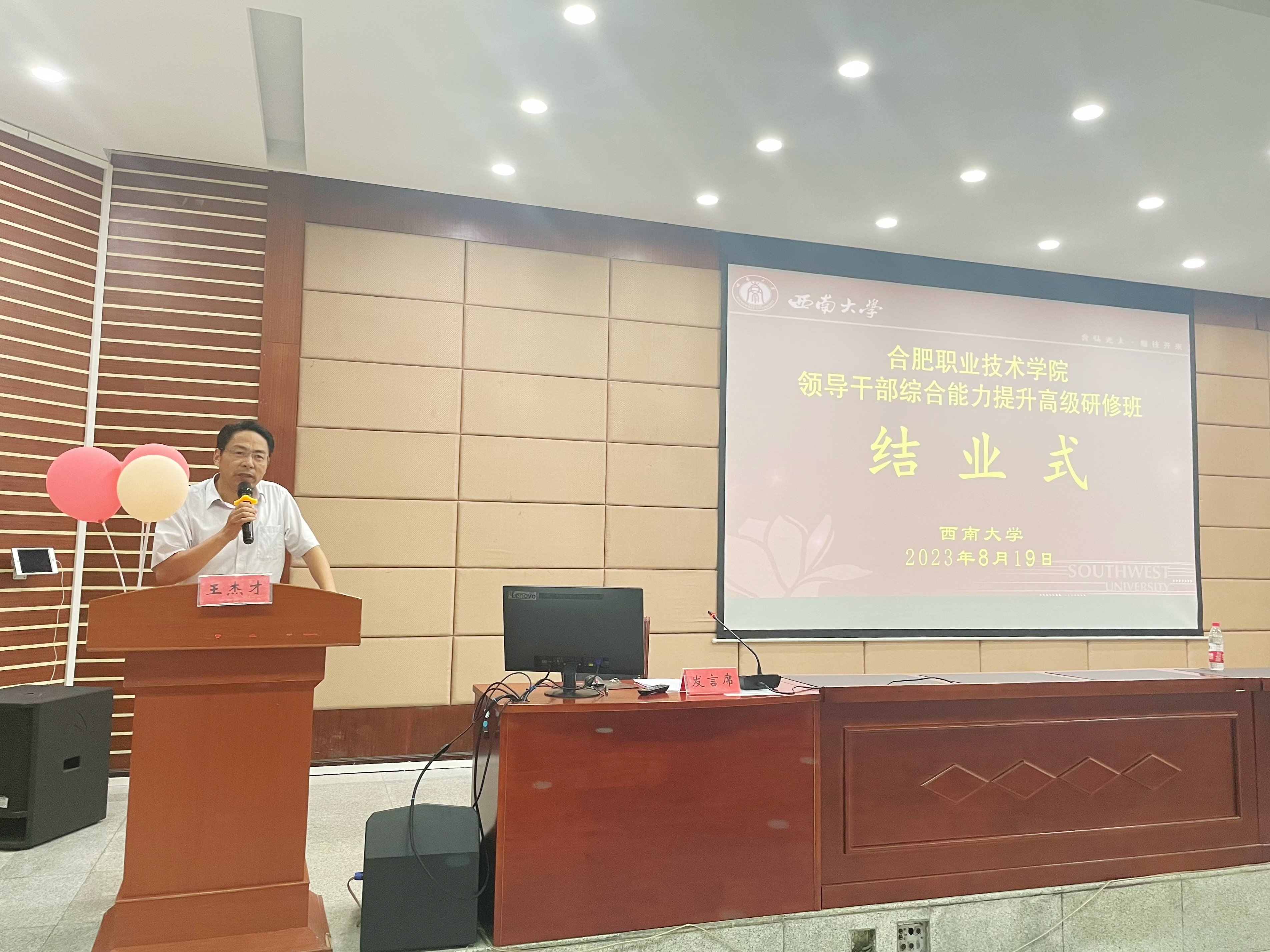 校党委书记王杰才在结业讲话中对全校领导干部提出四点要求,要提高站位,一是思想站位,全面落实立德树人根本任务,要服务社会,服务合肥的经济发展。二是思维站位,要看到社会的需要,市场的需要,学生未来发展的需要;三是思路站位,知现状明去路,找到实现目标的发展路径;要未雨绸缪,弄清自身优势和短板,结合政策利好信息与资源,从教育者、管理者、行业引领者的角度共谋顶层设计;要义无反顾,在奉献中去开拓,去进取,重视工作闭环;要带好队伍,把文件“解码”为举措,把思路“解码”为可行性方案,把各项会议要求“解码”为本单位落实的实践。同时,作为党员领导干部,率先垂范不可少,标杆作用不可缺,要切实将本次培训成果转化为格局的变化,能力的提升。