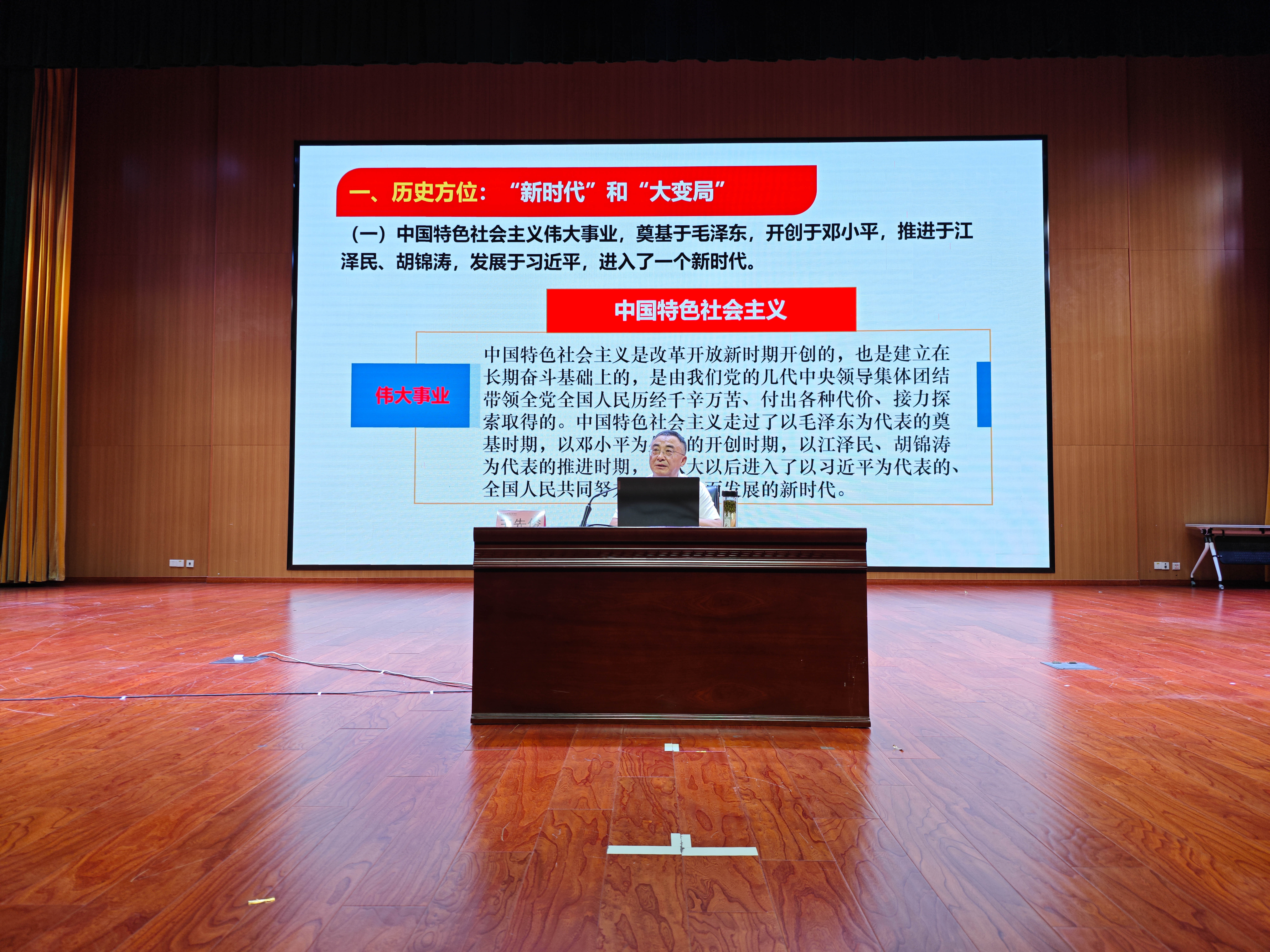 王先俊教授站在历史的方位,运用全球视野,从理论体系、突出贡献、历史地位、教育意义等方面,阐明了新时代的内涵,梳理出习近平新时代中国特色社会主义思想的原创性贡献,深刻阐述了习近平新时代中国特色社会主义思想深远的历史根据、深厚的理论渊源、坚实的实践基础,深入解读了习近平新时代中国特色社会主义思想的科学体系、核心要义和实践要求。讲座为伟德官网师生拓新了对习近平新时代中国特色社会主义思想的认知,更激发了师生“学习新思想、建功新时代”的斗志和信心。