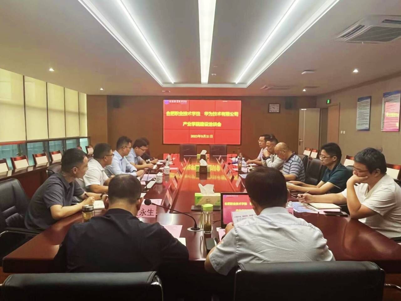 9月21日下午,华为技术有限公司安徽合肥总经理陆机周一行5人来校洽谈共建产业学院建设。学校党委委员、副校长周晓隆,党委委员、副校长范家茂,教务处、科技处、现代教育中心、信息工程与传媒学院、机电工程学院及汽车工程学院等负责人参加洽谈会。会议由周晓隆主持。