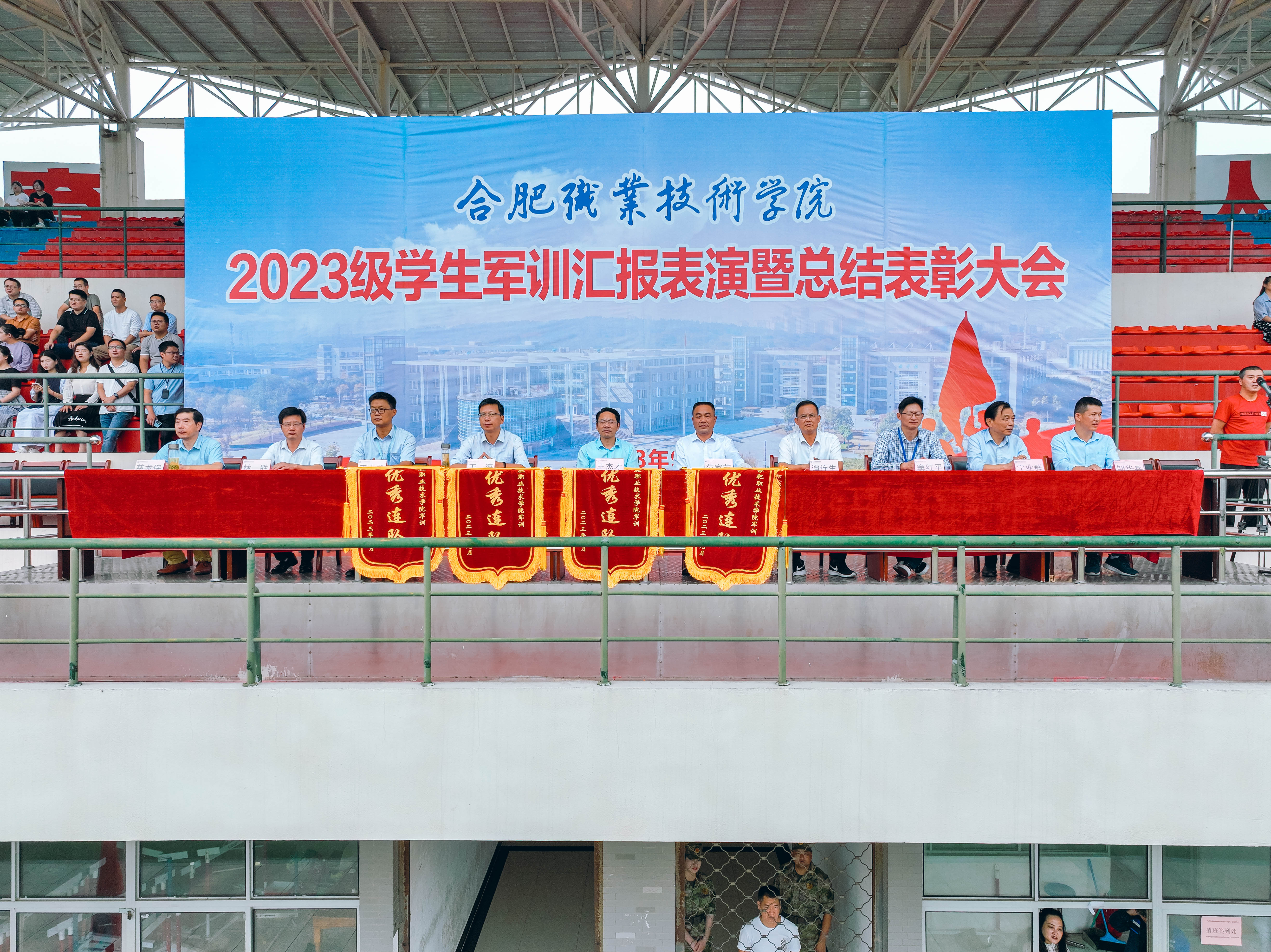 汇报表演结束以后,副校长范家茂、校领导陶宁宣读了《关于表彰2023级学生军训先进集体、优秀个人的决定》,通报了“优秀教官”、“先进连队”和“优秀个人”等三项获奖单位及个人名单。与会领导和嘉宾为获得表彰的集体和个人进行颁奖。