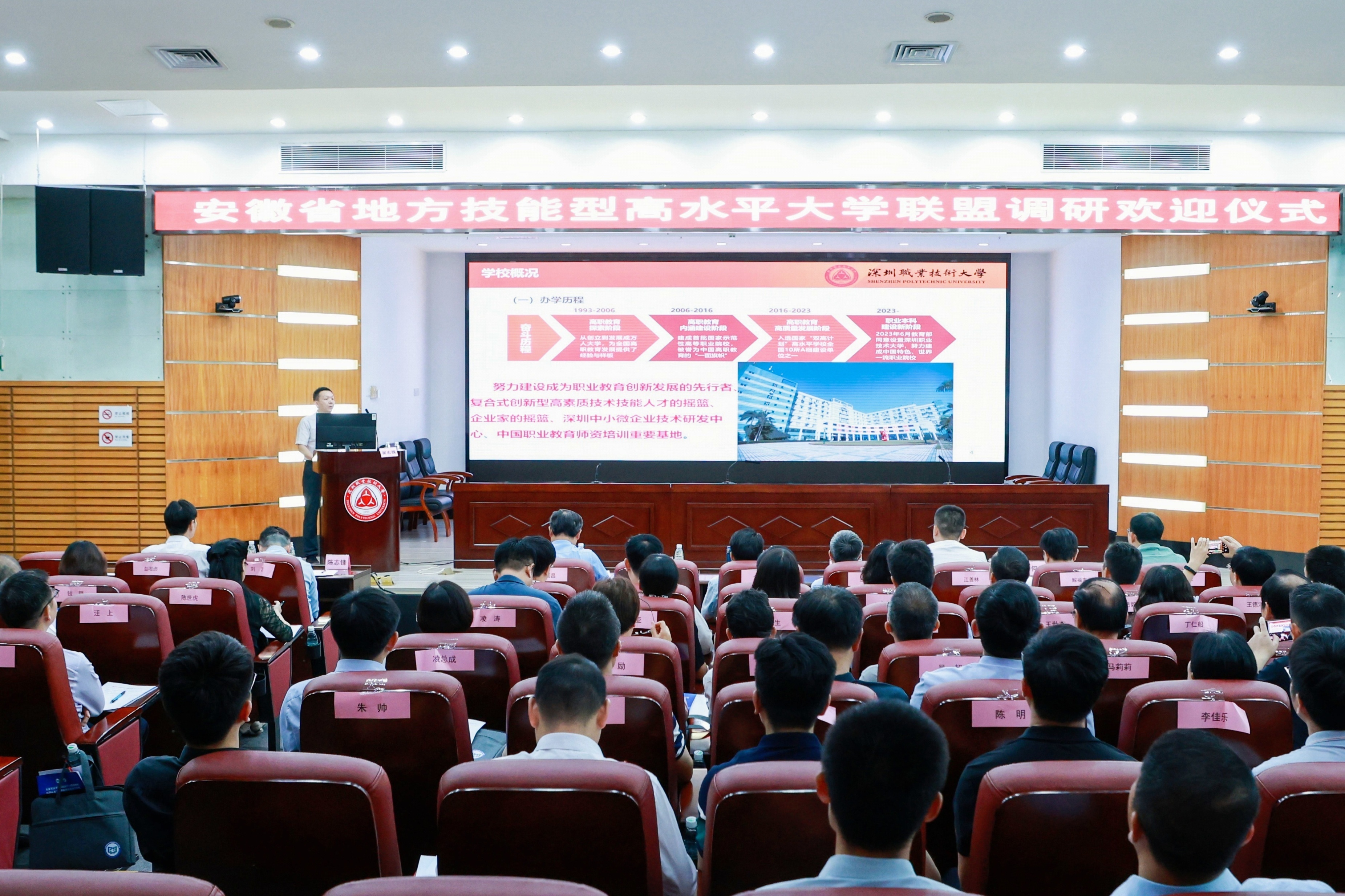 为进一步落实省委、省政府关于我省高职院校学习借鉴移植深圳职业技术大学等先进办学经验有关工作,推动我省高等职业院校主动对标先进,服务我省十大新兴产业发展和高水平创新型省份建设,为现代化美好安徽建设提供强劲动能。在省教育厅的具体指导下,10月27日至29日,安徽省地方技能型高水平大学联盟组织全省50所高职院校一行赴深圳职业技术大学、华为技术有限公司和固高科技股份有限公司等单位开展调研。