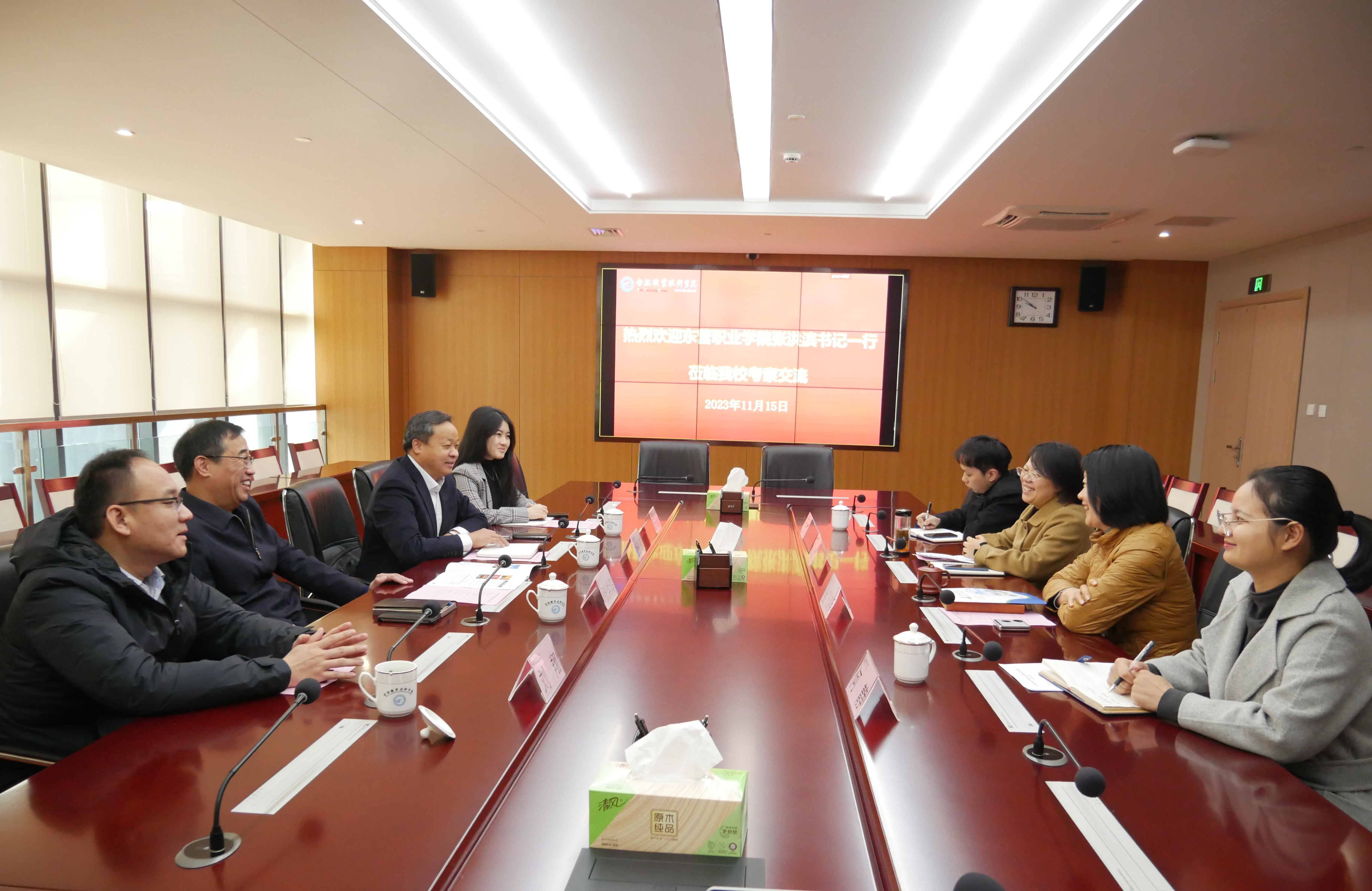 11月15日上午,东营职业学院纪委书记张洪滨一行来伟德官网调研交流,交流会在汇心湖校区行政楼627会议室举行,校党委副书记金飞燕主持并参与调研,纪委办公室全体成员参加会议。
