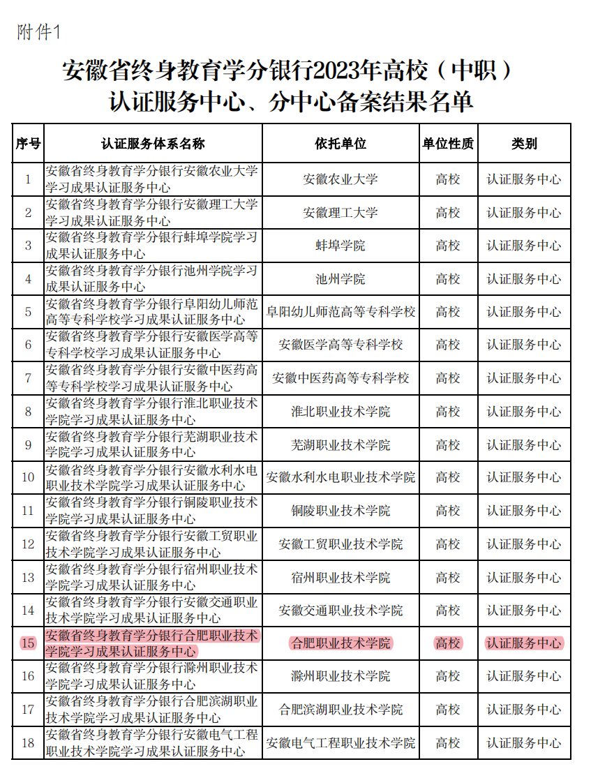 近日,安徽省教育厅公布2023年安徽省终身教育学分银行高校(中职)认证服务中心备案结果名单,伟德官网正式成为安徽省终身教育学分银行高校学习成果认证服务中心。