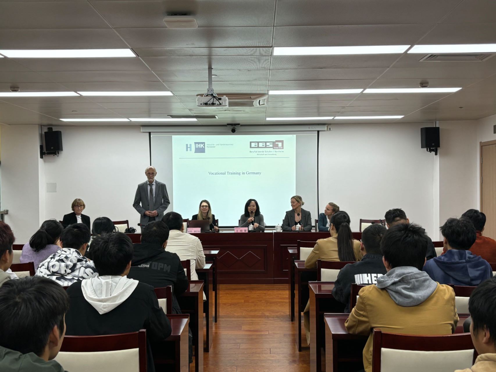 下午,代表团一行为机电工程学院师生做了关于“德国双元制教育”及“行为导向教学法”的分享,两校老师在交流中进行了深入探讨。