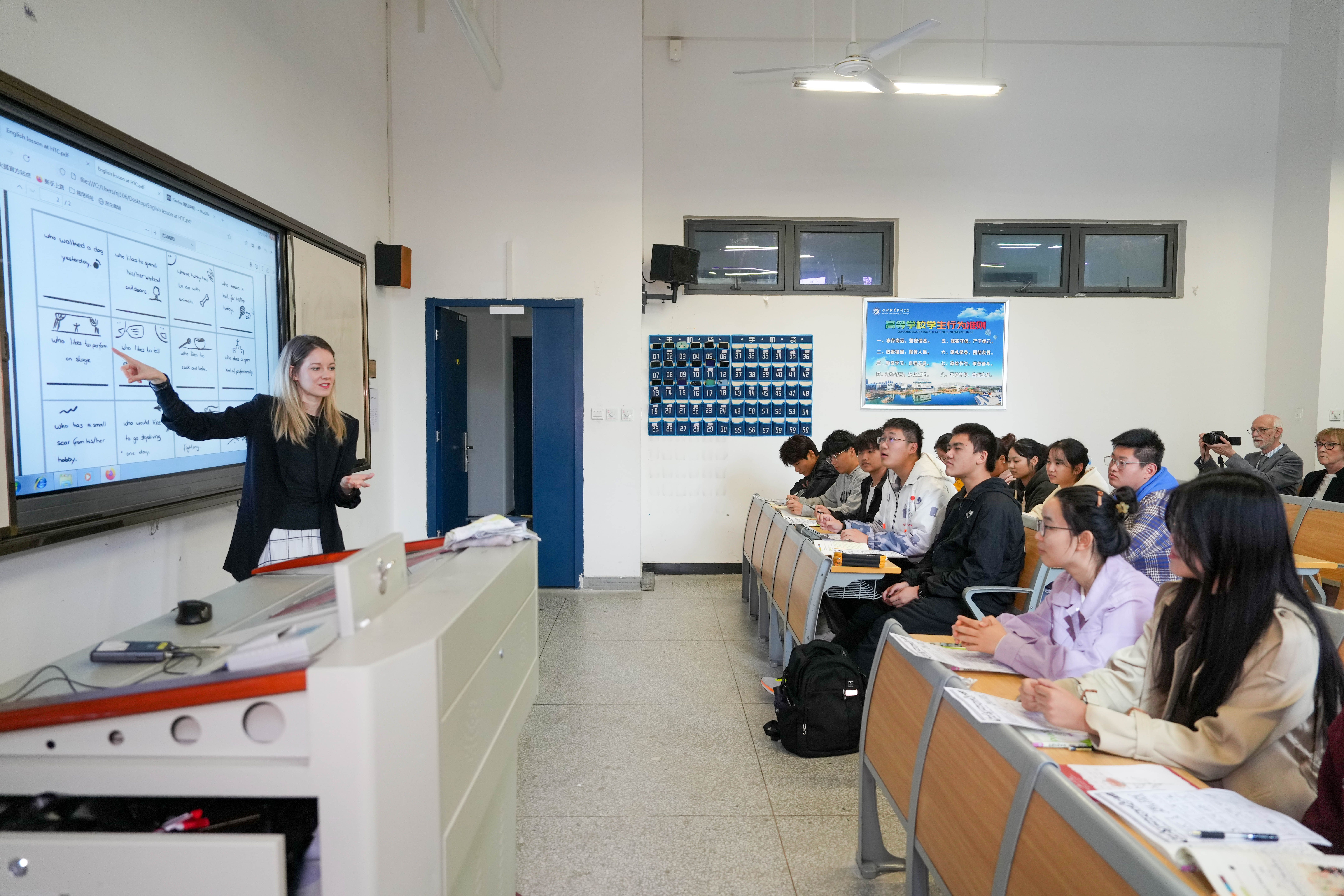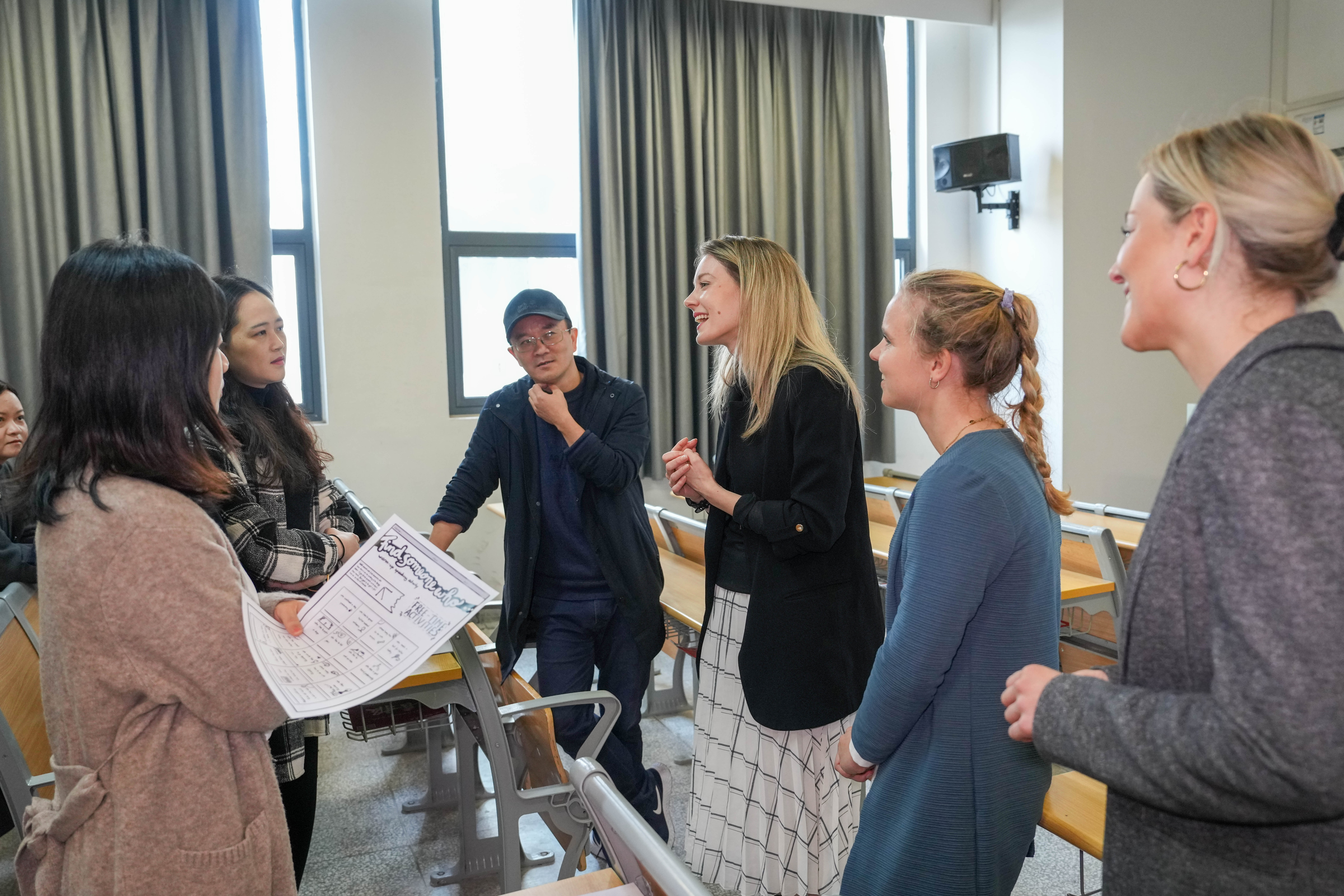 随后代表团来到南教学楼,教师代表劳拉·平葛为伟德官网23旅管2班带来一节别开生面的英语公开课。平葛女士结合讲授与练习,动员全体同学开展了一次活跃的口语交流课程。课后,教师代表团与伟德官网教师就英语教学教法等方面展开了轻松愉快的交流。