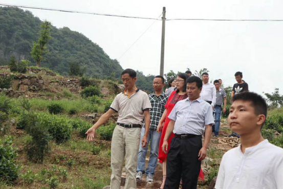 新明乡政府领导带领专家导师团参观夹坑猴魁茶园