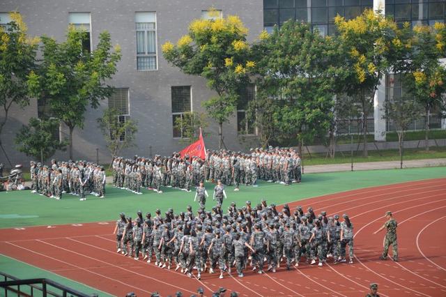 赤日当空,新生们精神抖擞地参与到了各个项目训练当中,太阳的炽热给军训工作带来了极大的困难,但同学们发扬了“不怕苦、不怕累”的精神,有的学生病倒了,依然凭借着顽强的意志坚持训练。在教官亲切的关怀和严格训练,全体新生认真的学习着齐步走、正步走、齐步变正步、解散、集合及分列式等预定训练科目。