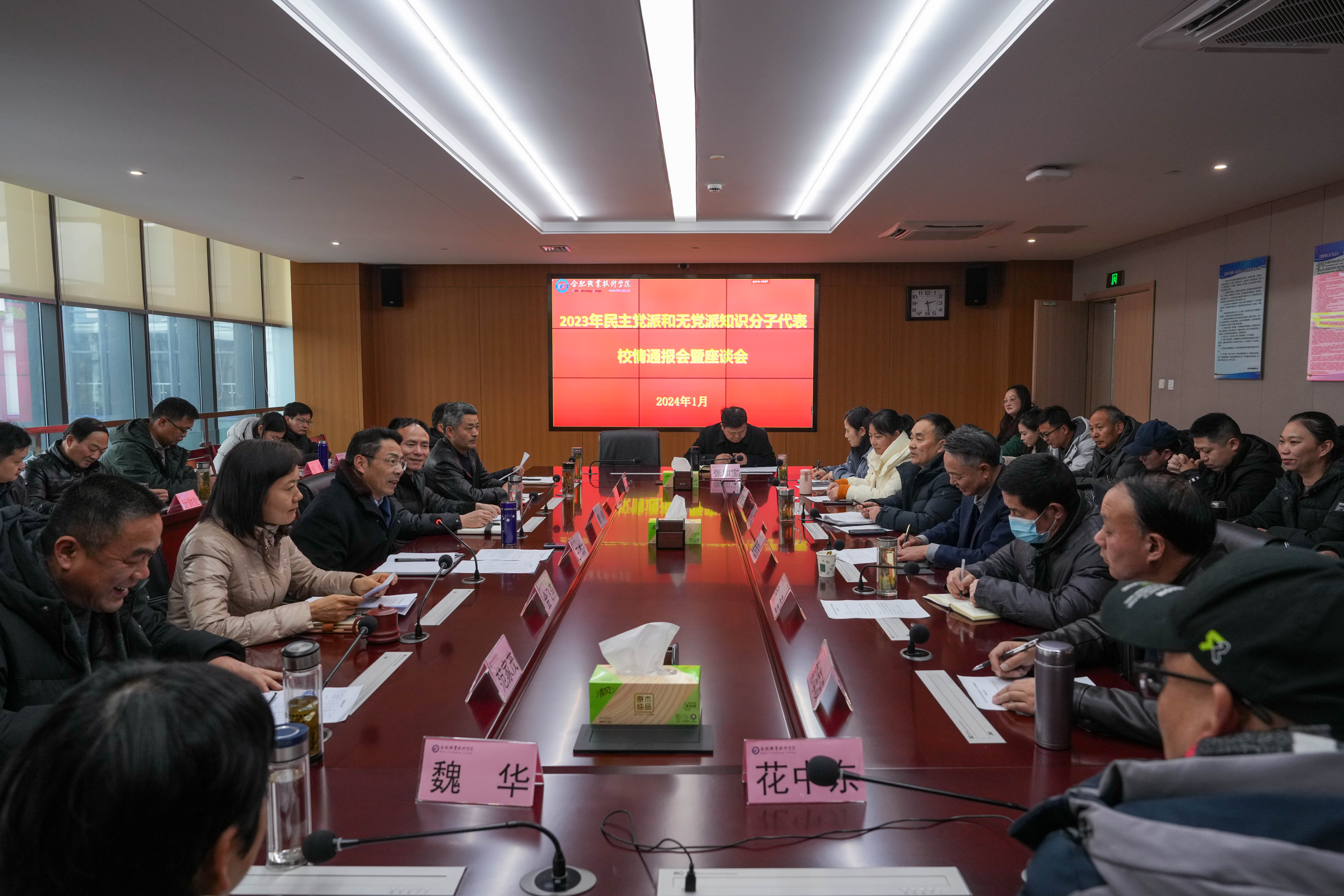 校党委副书记金飞燕向民主党派成员和无党派知识分子代表通报了学校2023年重大发展情况。与会代表围绕落实立德树人根本任务,全力推动学校高质量发展;持续深化“一改两为”、着力强化党建引领及加强内涵建设等主题及教育教学改革、专业设置与建设管理、服务、人才培养等方面内容,结合自身工作实际,开展交流研讨发言。
