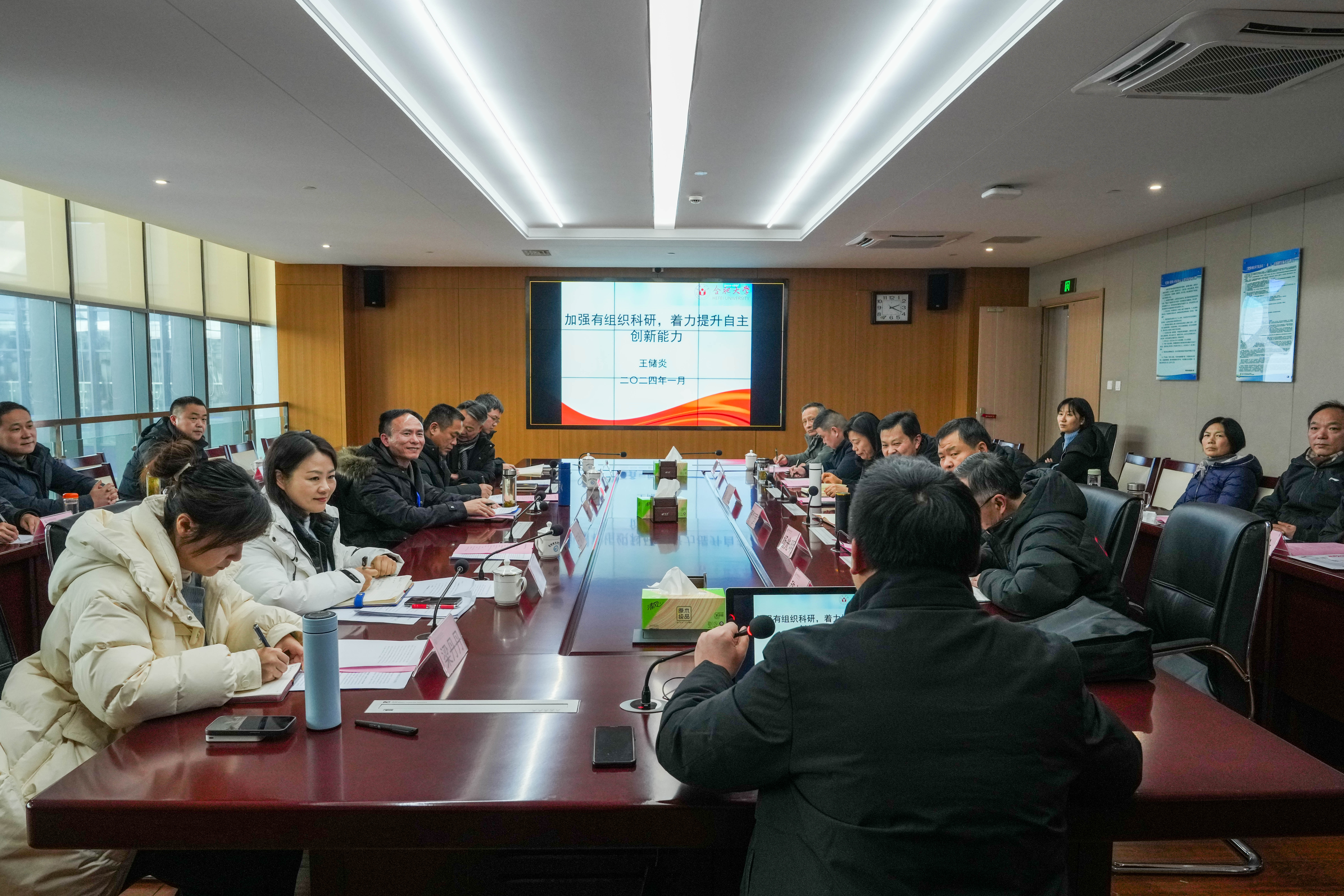 会上,邀请了合肥大学科研处处长王储炎教授进行了“加强有组织科研,着力提升自主创新能力”的专题报告。报告详细阐述了合肥大学的科研现状、新时代国家的科研政策、应用型大学当前科研工作的思路、科研管理模式及科研激励措施等,这对伟德官网如何加强有组织科研、提升自主创新能力提供了重要帮助。